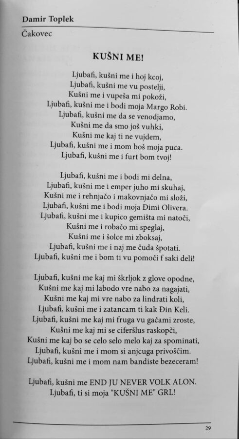 – Prije par mjeseci izašao je natječaj za prijavu na 41. KAJ. Inspiriran sudjelovanjem u RTL-ovoj emisiji „Ljubav je na selu“ počeo sam pisati pjesme i nekako sam se fokusirao da pišem upravo na mojem kajkavskom dijalektu i moram priznati, to me je ispunjavalo, jer volim svoje Međimurje – rekao je Damir Toplek o svom pjesničkom angažmanu, dodavši: