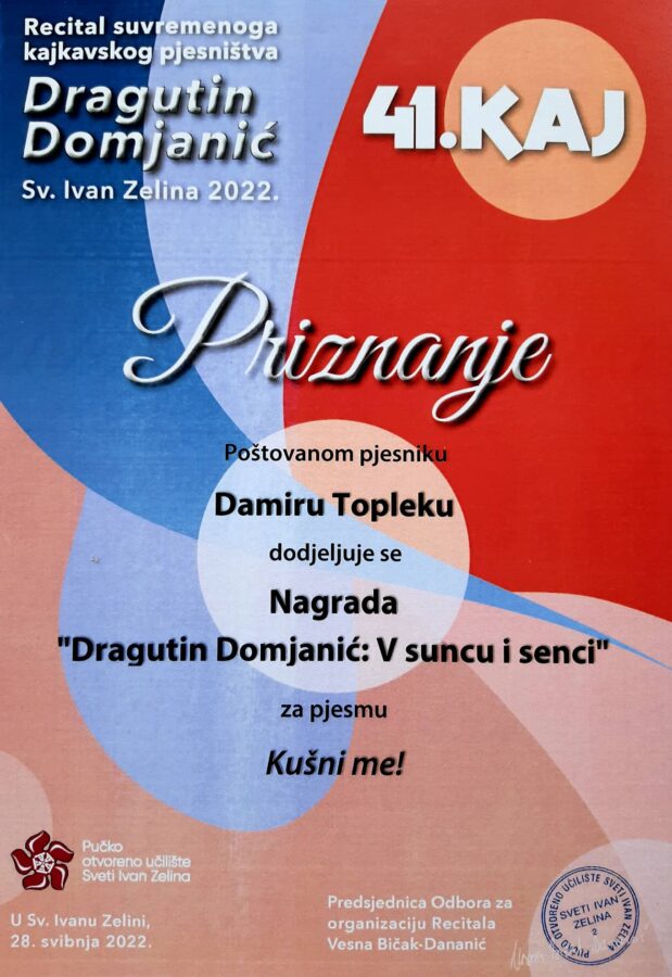 Istaknuo je i kako stotine prijava i tisuću pjesama, a u 3. završni krug 41. KAJ-a ušlo ih je 12, te su ih lijepo nagradili i pritom ih pozvali na druženje i čitanje svojih pjesama u Sveti Ivan Zelinu kao počasne goste 28. svibnja 2022. godine.