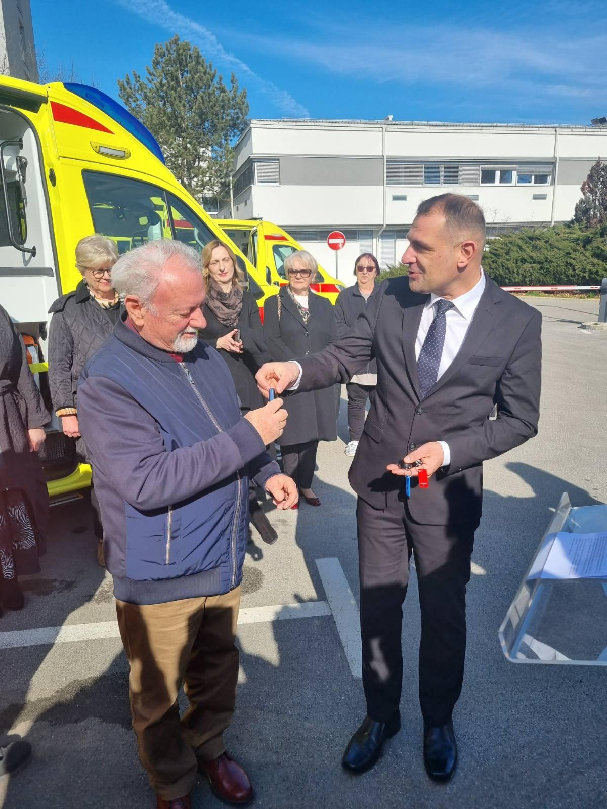 Zavod za hitnu medicinu Međimurske županije danas je „pojačao“ svoj vozni park s tri nova vozila za hitnu medicinsku pomoć i sanitetski prijevoz. Na prigodnoj svečanosti međimurski župan Matija Posavec uručio je ključeve novih vozila predsjedniku Upravnog vijeća Zavoda dr. Dragi Starčeviću ravnateljici Zavoda dr. Vladimiri Križaj-Grabant. U svom obraćanju ona je zahvalila Međimurskoj županiji i županu na osiguranim vozilima i opremi.
