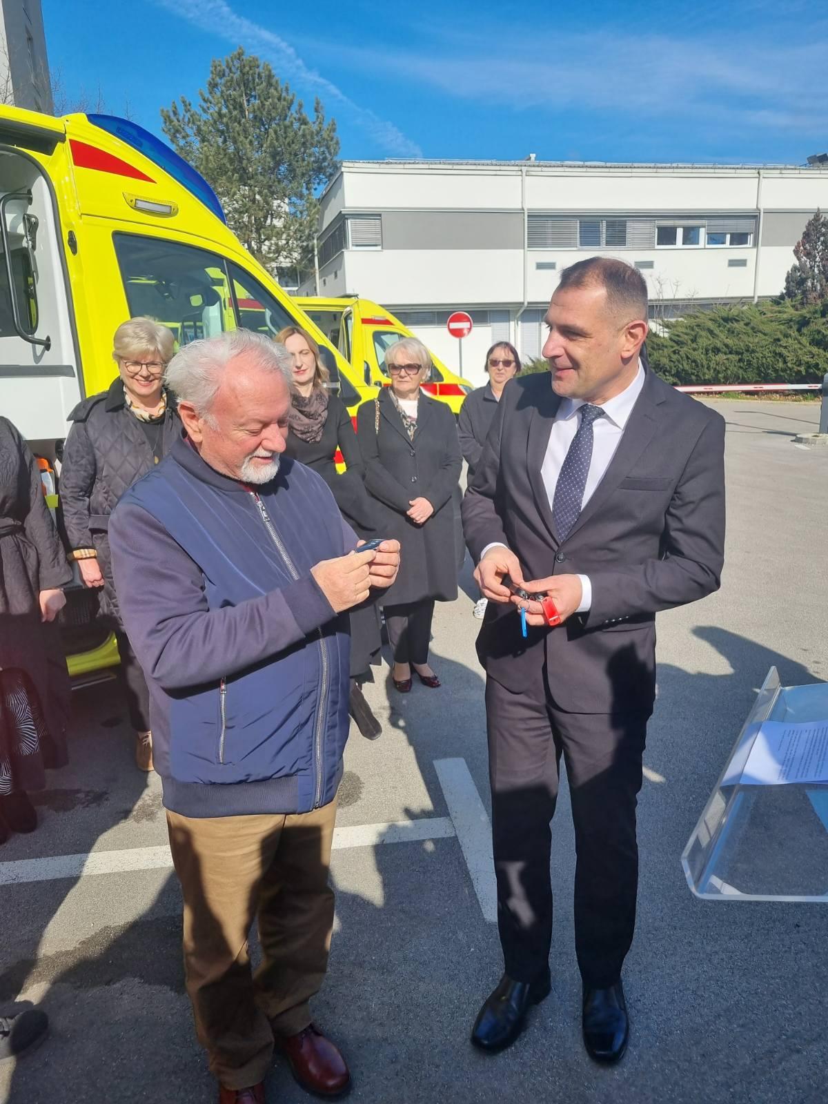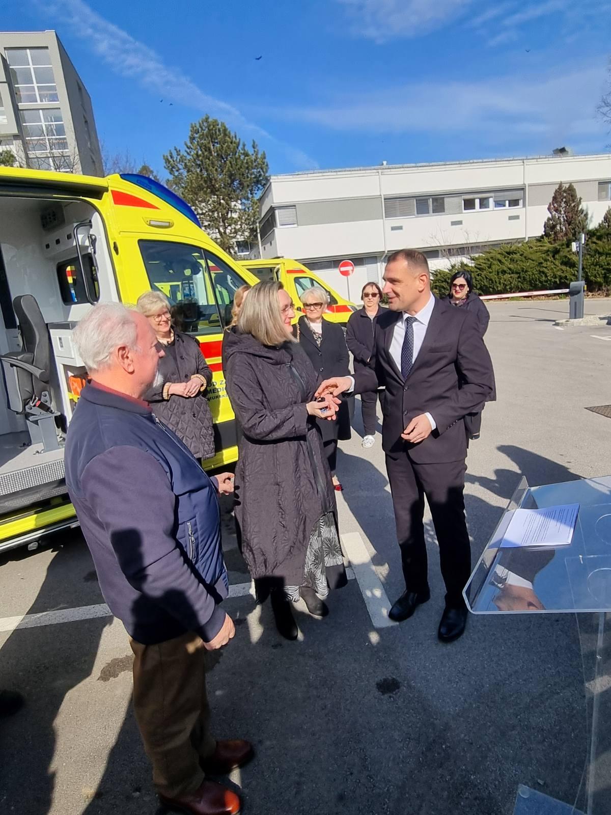Zavod za hitnu medicinu Međimurske županije danas je „pojačao“ svoj vozni park s tri nova vozila za hitnu medicinsku pomoć i sanitetski prijevoz. Na prigodnoj svečanosti međimurski župan Matija Posavec uručio je ključeve novih vozila predsjedniku Upravnog vijeća Zavoda dr. Dragi Starčeviću ravnateljici Zavoda dr. Vladimiri Križaj-Grabant. U svom obraćanju ona je zahvalila Međimurskoj županiji i županu na osiguranim vozilima i opremi.