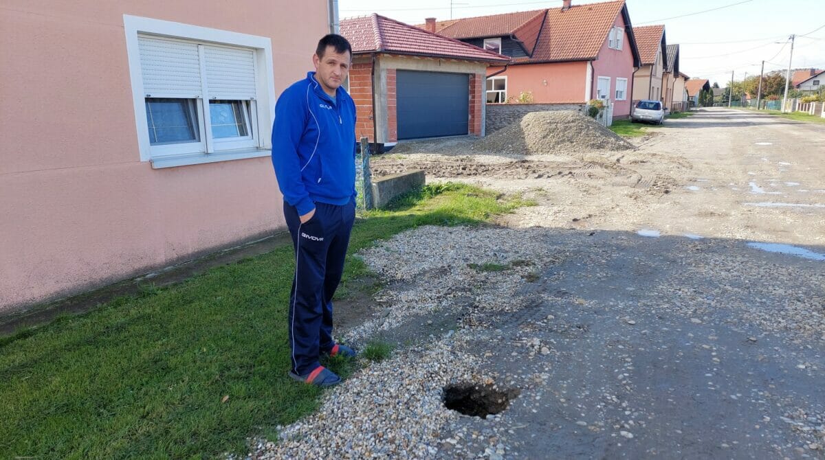 Nekoliko rupa sam već zatrpao sam s lopatom. U ovoj ulici su Mađari zatrpali i odvodni kanal, pa kad pada puno kiše, na cesti se skuplja puno vode, a tu niže je i osnovna škola, pa po ulici hodaju i djeca na putu do škole i doma… – upozorava Zvonko Igrec.