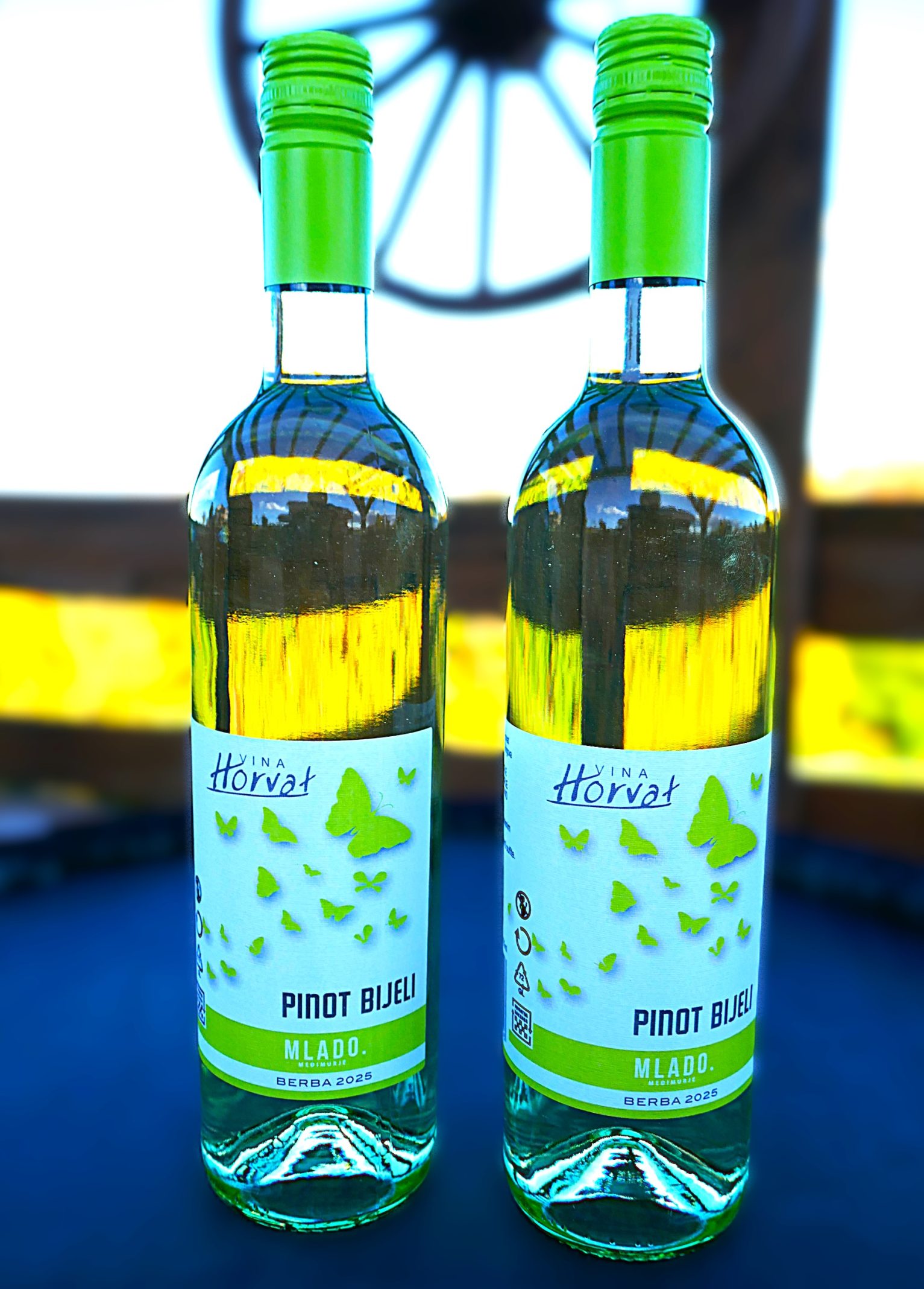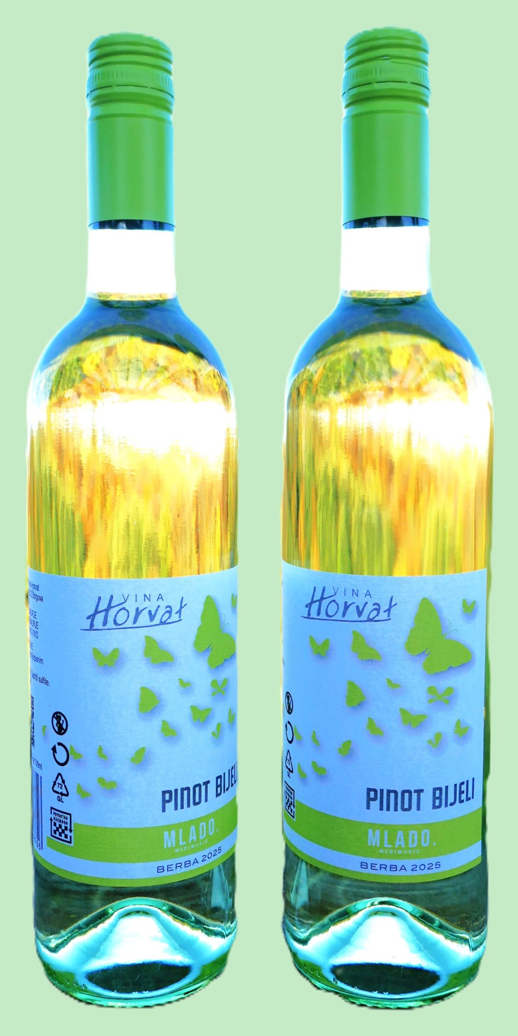 Zaštićeni leptir na etiketi vina Vinarije Horvat više nije plavi nego zelenkast, ali ostaje u jatu nagovještavajući tako visoku kvalitetu i dobar prijem među ljubiteljima mladih vina. A već prvo kušanje mladog, lepršavog, egzotičnog i izrazito svježeg Horvatovog bijelog pinota, govori da je i ovaj put napravio dobar posao.