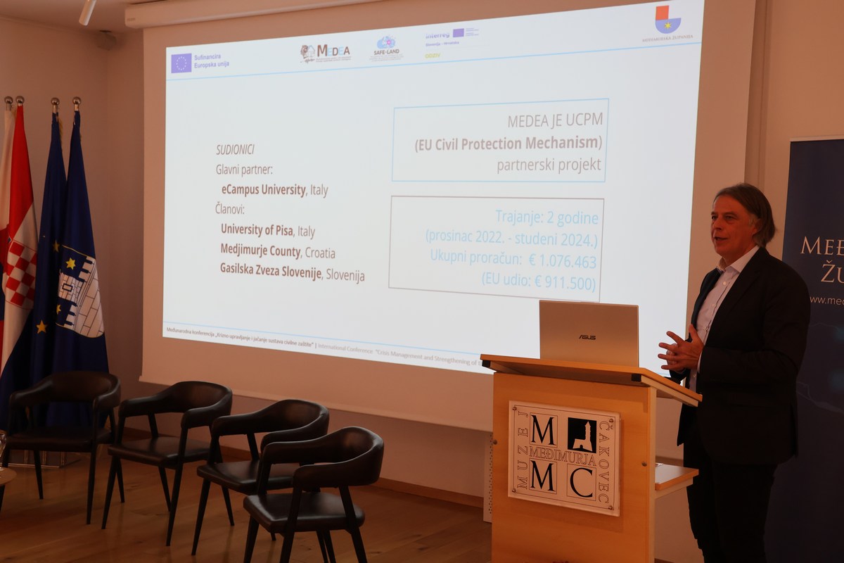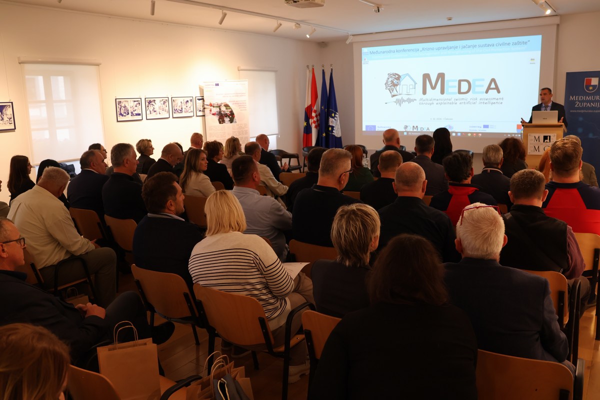 Tijekom konferencije predstavljena su dva projekta u kojima sudjeluje Međimurska županija, projekt MEDEA i SAFE-LAND, sufinancirani sredstvima EU-a, kojima je cilj olakšati suradnju država članica u intervencijama civilne zaštite u slučaju katastrofa i oba se temelje na primjeni umjetne inteligencije.Projekt MEDEA je netom završen i podrazumijevao je višedimenzionalnu procjenu rizika od potresa uzimajući u obzir procjene strukturnih oštećenja i psiholoških posljedica za ljude. Proveden je na području općine Sveti Martin na Muri.  U trećem, prekograničnom INTERREG projektu Hrvatska – Slovenija, nazvanom Odziv, partneri su Javna ustanova za razvoj Međimurske županije REDEA i Gradsko društvo crvenog križa Čakovec, također je riječ o unaprjeđenju kapaciteta civilne zaštite te boljom pripremom za prirodne katastrofe osiguravanje preciznih alata za procjenu rizika i jačanjem suradnje na nacionalnoj, lokalnoj te međunarodnoj razini. Navedene projekte predstavili su Alan Resman, te Ida Kovač iz Međimurske županije, Sandra Majsan iz REDEA-e, Vlatka Vincetić iz Gradskog društva Crvenog križa Čakovec, kao i predstavnici partnera iz Italije i Slovenije Francesco Focacci, Elisabetta Cattoni, te Borut Jurišič