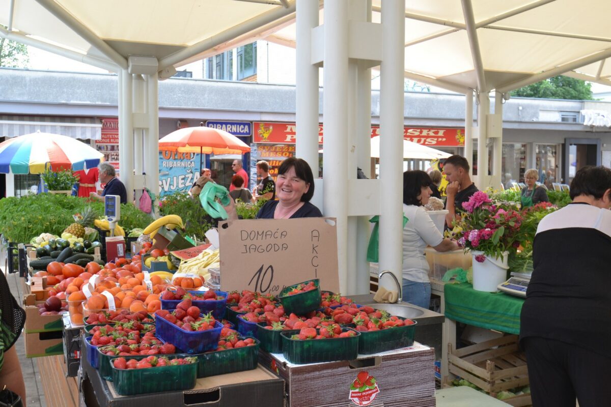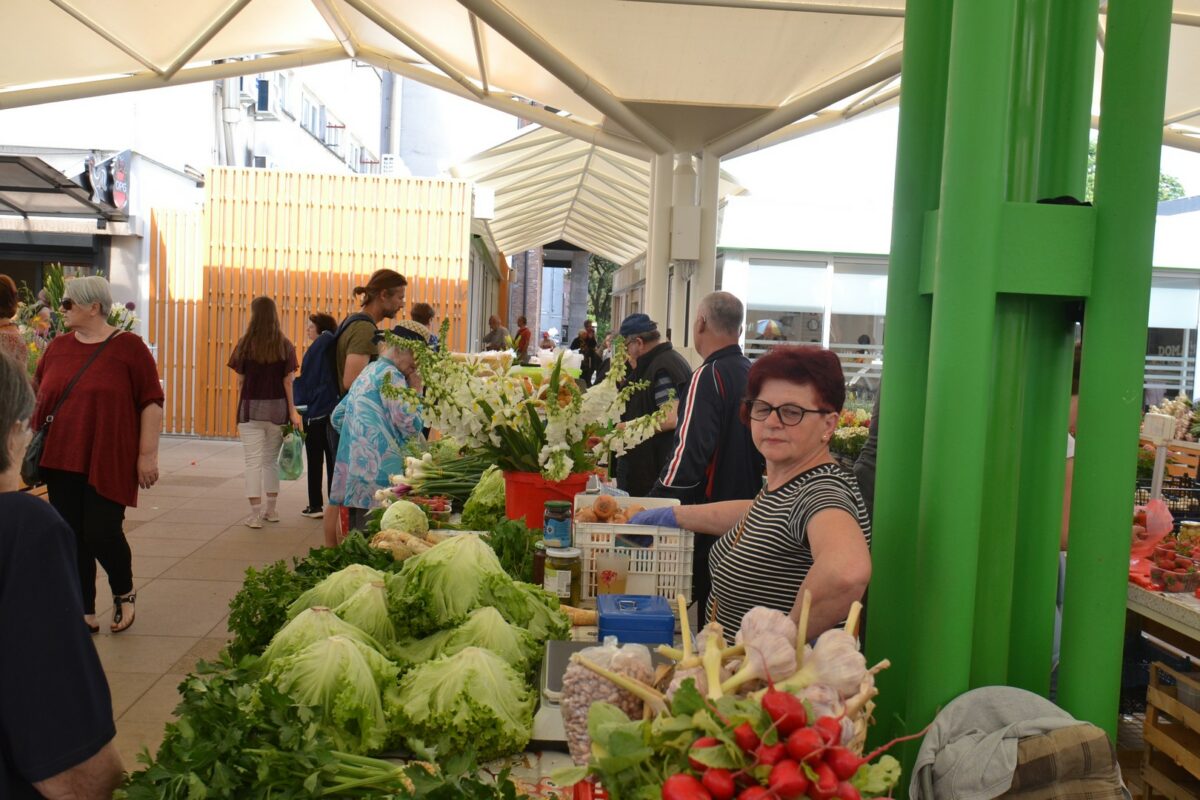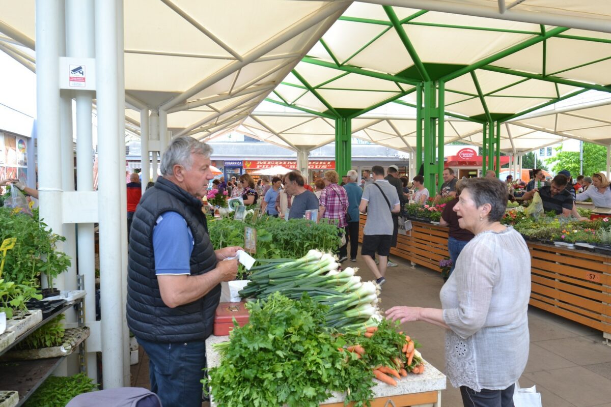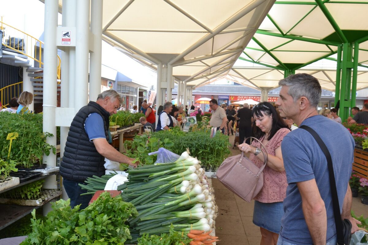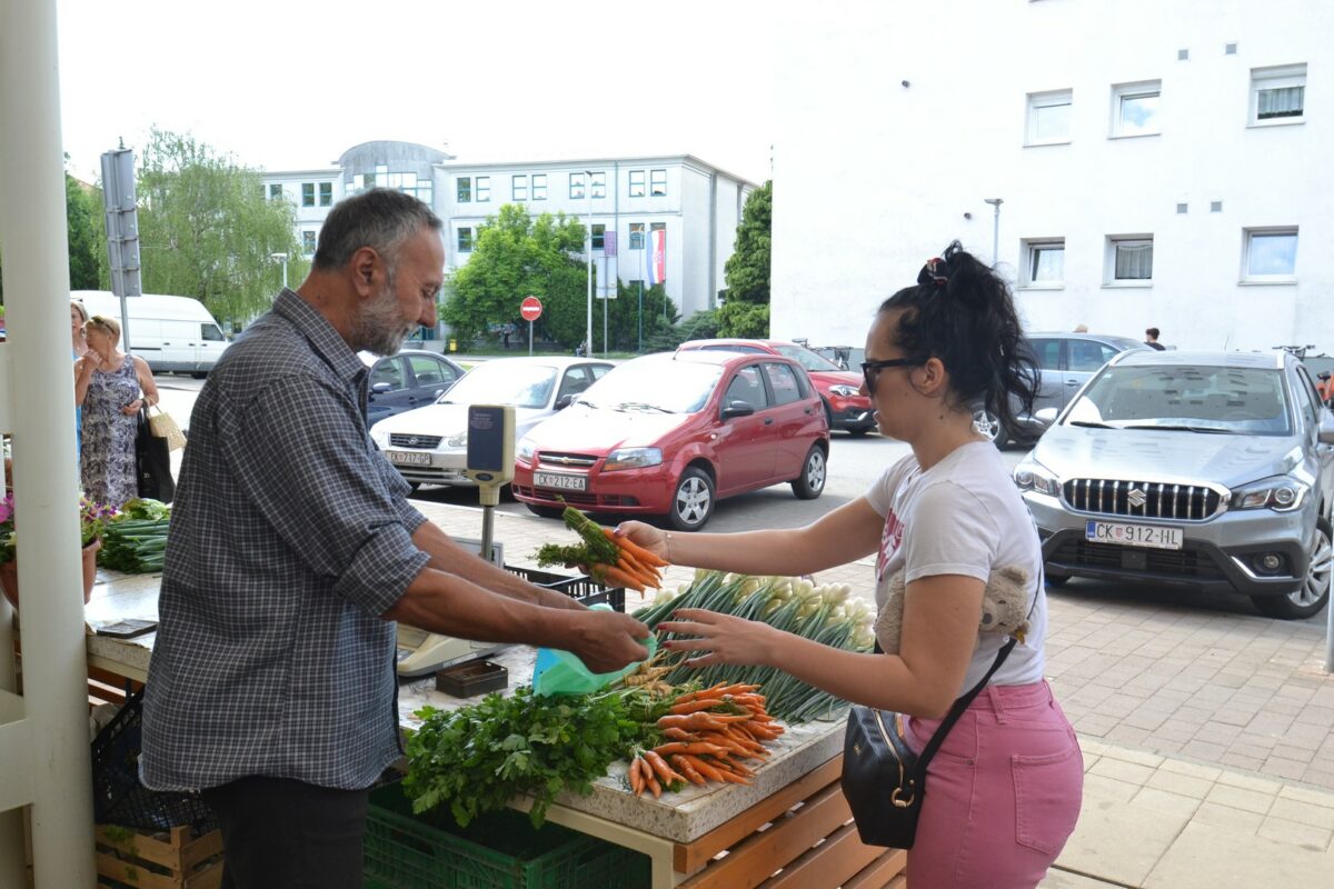 Po običaju, na gradskoj zelenoj tržnici u ovo doba godine ima svega: od mladog krumpira, mladog luka i zelja do mrkve, peršina i kelja… Cijene i nisu previsoke, pa oni koji nešto trebaju niti ne pitaju koliko košta.