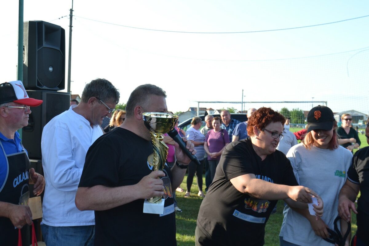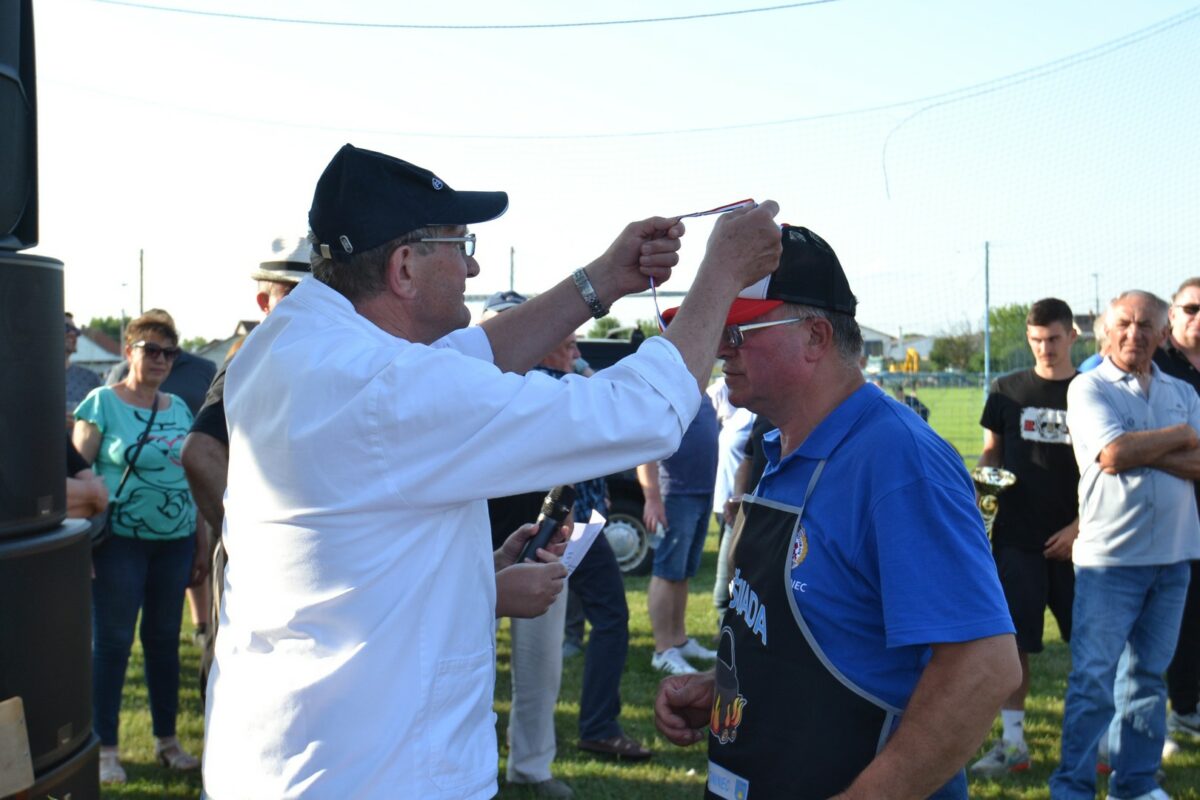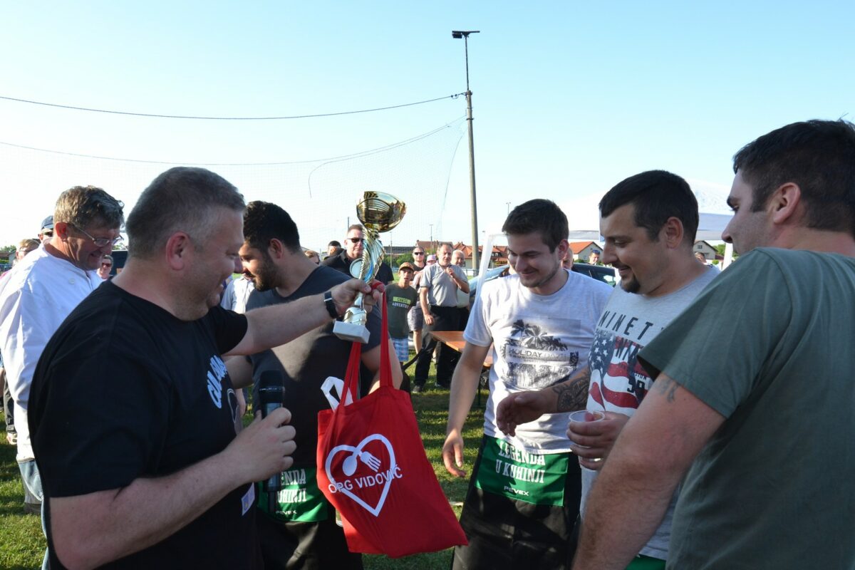 Prvo mjesto osvojila je “Puljić ekipa” (vođa Marko Puljić), drugo mjesto Karlo Žganec i pomoćnici, a treće OŠ Strahoninec (vođa Josip Šipek). Uz medalje za sudjelovanje, pobjednička ekipa iz ruku načelnika Franje Lehkeca primila je pehar, meso z tiblice i tablu špeka, druga ekipa meso z tiblice i tablu špeka, a treća 2 kilograma kobasica. Mesne delicije poklon su OPG-a Vidović.