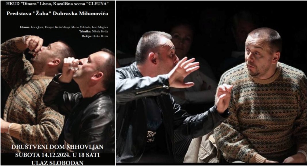 U subotu, 14. prosinca 2024. godine, KUD “Mihovljan” bit će domaćin glumcima Kazališne scene “Cleuna” HKUD “Dinara” iz Livna, koji će u Društvenom domu u Mihovljanu u 18 sati izvesti predstavu “Žaba” Dubravka Mihanovića.