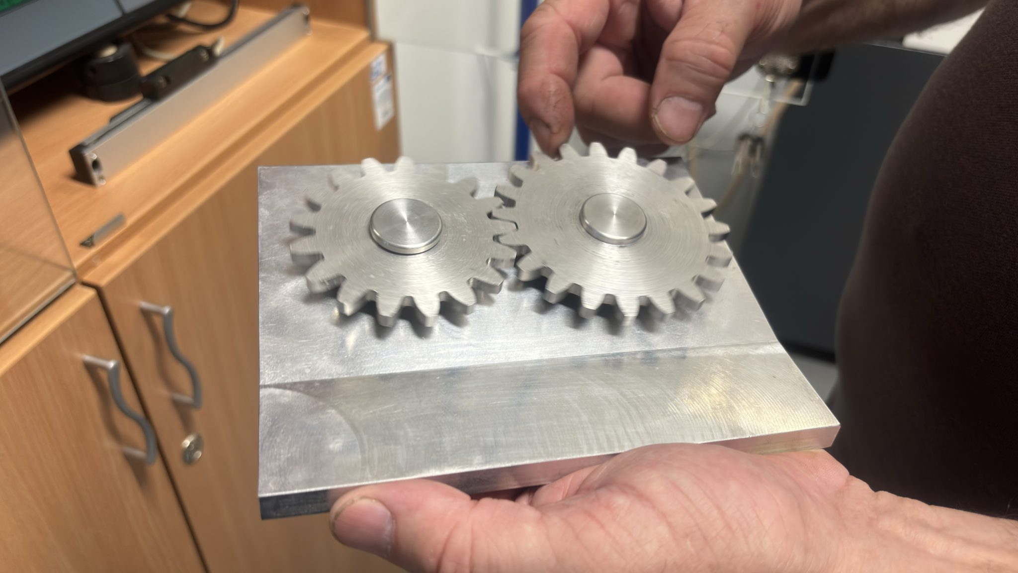 -To je prostor namijenjen strojarskim računalnim tehničarima i CNC operaterima. Opremljen je CNC strojevima u vlasništvu škole. Konkretno, posjedujemo glodalicu i tokarilicu te 12 radnih mjesta za učenike s računalima. Osim toga, opremljeni smo simulatorima i upravljačkim programima kakvi se koriste na strojevima. Ovdje održavamo nastavu gdje učenici s pomoću ovih programa na računalima vrše dizajniranje strojnih dijelova i razrađuju tehnologiju obrade. Izrađujemo od jednostavnijih do složenijih oblika. Recimo, od šahovskih figura do kompleksnijih zupčanika, pojašnjavam nam Stanić.