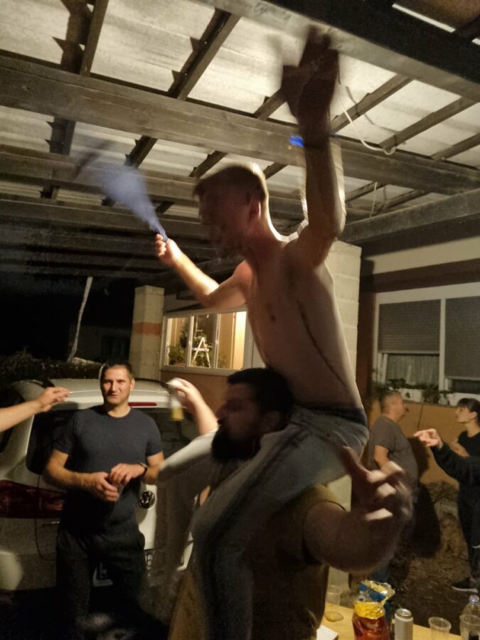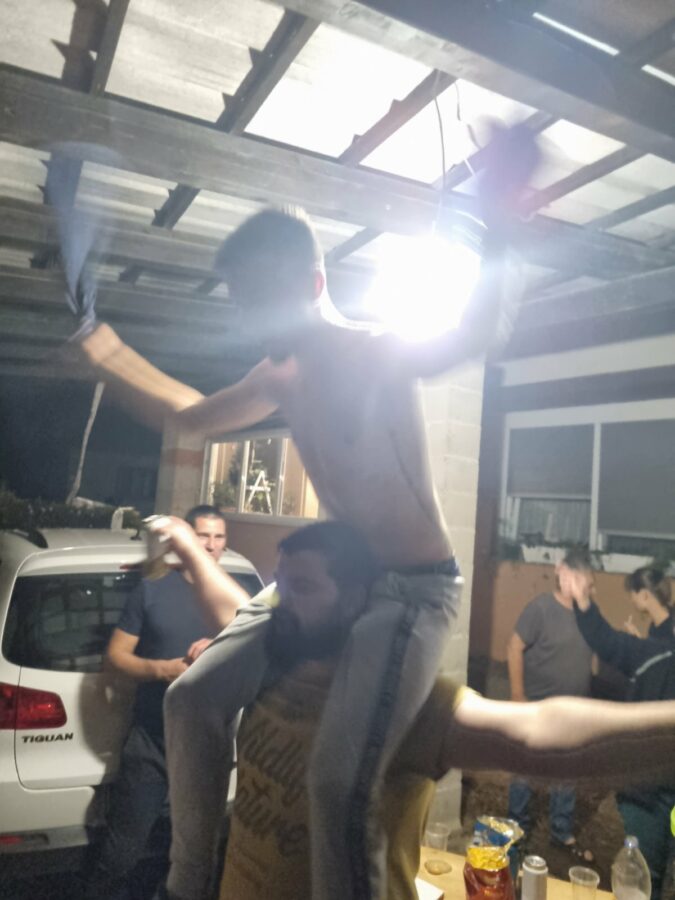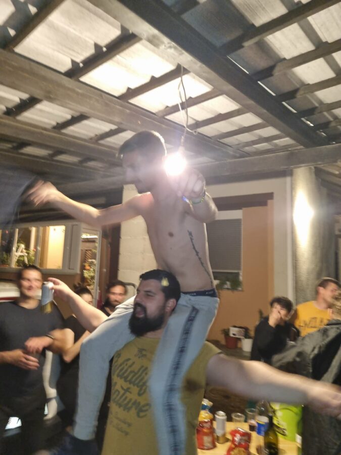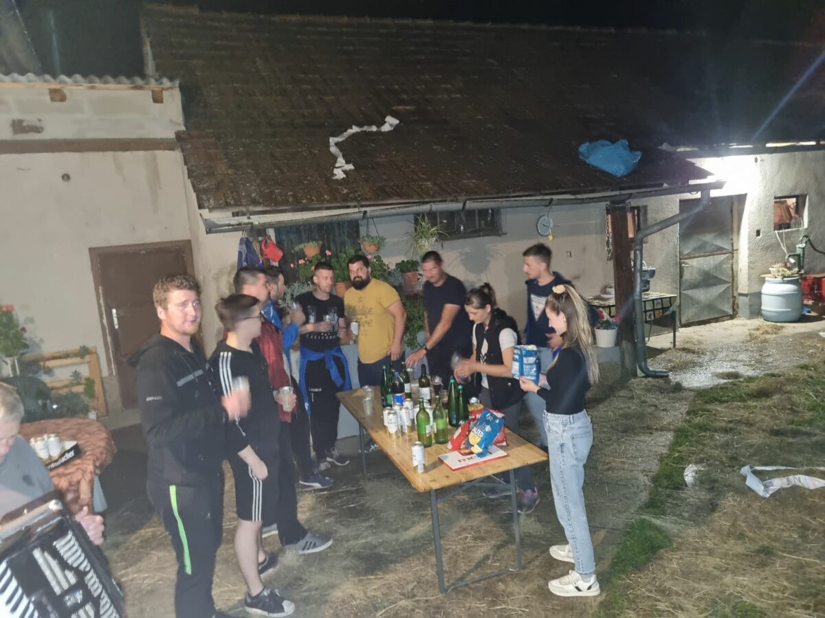 Prijateljice i prijatelji dobro su natepli budućim mladencima Luki Valentiću iz Strelaca i Kristini Horvat iz Palovca. Bilo je tu svega, od slame i sijena, do platnenih i papirnatih trakica i šljokica… Bez glazbe se nejde u takve akcije, pa harmonikaš obavezno mora biti u ekipi. “Potepače” su lijepo dočekali “hižne japice i mamice”, počastili ih pićem i dobro pogostili, a veselica je trajala dugo u noć. Sve za sreću u braku!