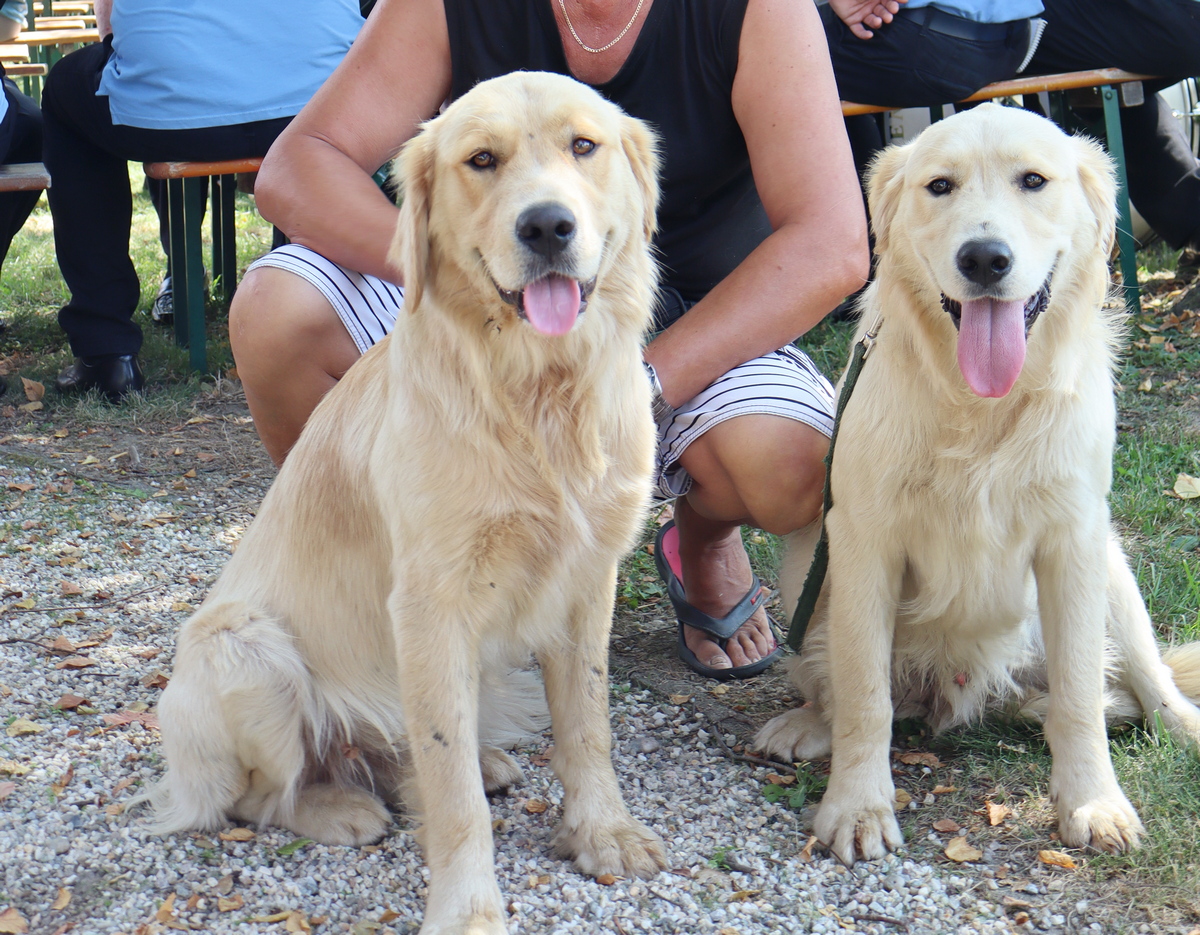Bonnie i Clyde su zlatni retriveri stari 9,5 mjeseci i ovo je njihovo prvo sudjelovanje u procesiji u Draškovcu.