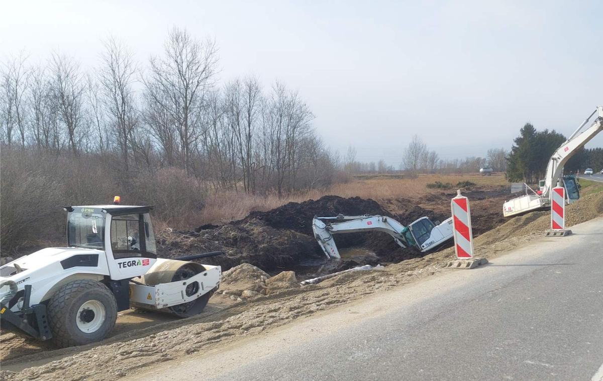 Radnike je vjerojatno i same iznenadila mekoća zemlje na tom dijelu, pa se bager tako prevrnuo i napola potopio u zemlju. Navečer je još bio tamo i vjerojatno će ga danas izvući.
