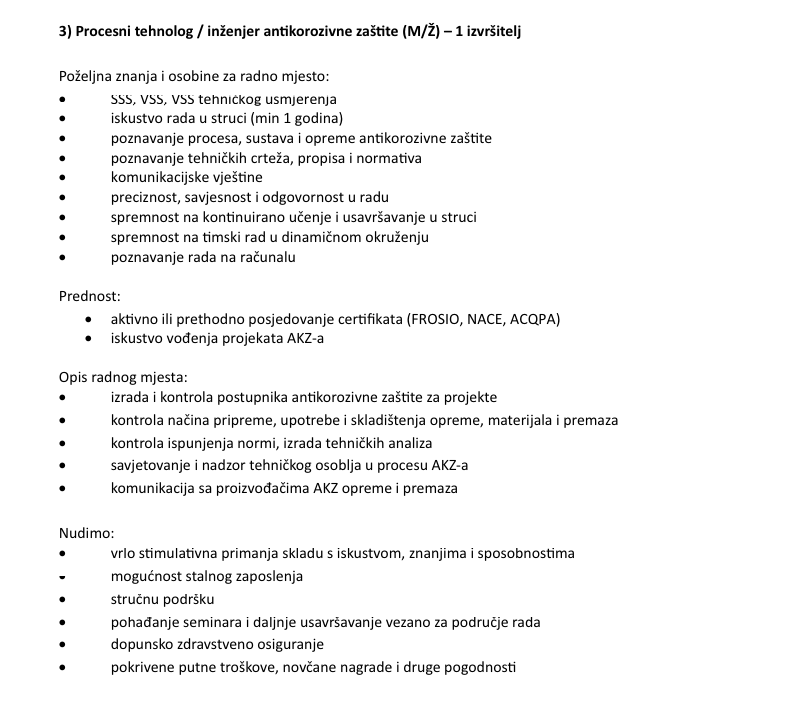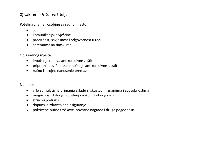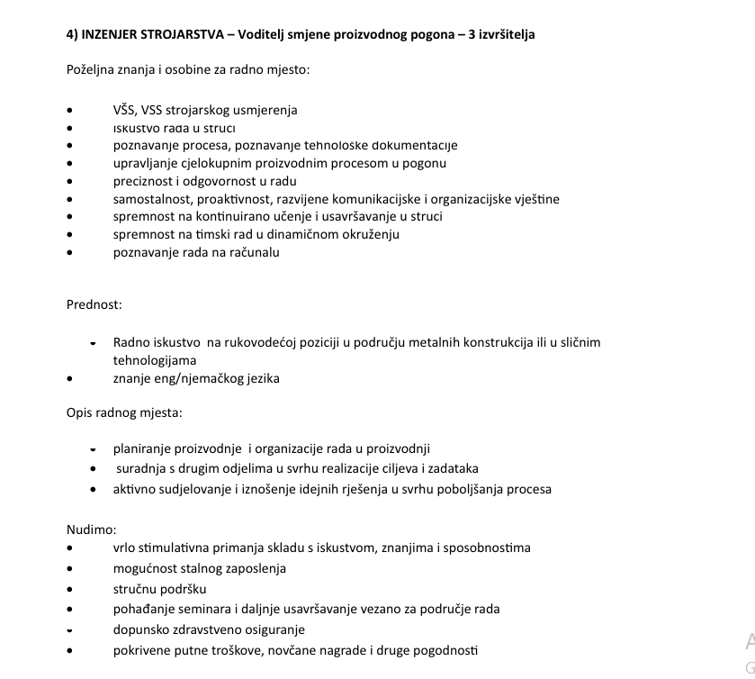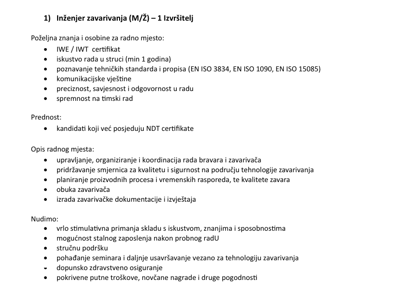 Uz iskustvo i vodstvo naših inženjera i majstora, nudimo primanja koja su među najvišima u branši i regiji, daleko iznad državnog prosjeka, a želimo proširiti i pojačati naš kvalitetan i stručan kolektiv sa: