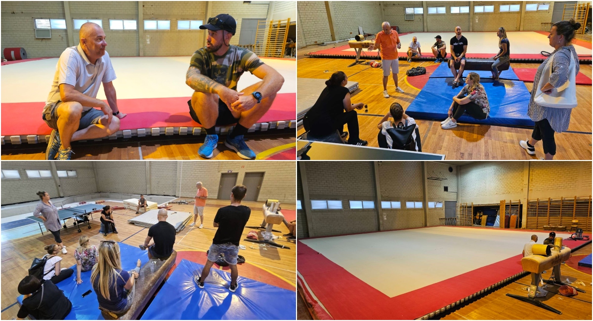 Subota prijepodne uspjela je gotovo u punom sastavu okupiti rukovodstvo kluba i trenere s ciljem obilaska radova u budućoj gimnastičkoj dvorani kod Učiteljskog fakulteta. Nakon vijesti o betoniranju i pripremi gimnastičke jame iz najtrofejnijeg međimurskog sportskog kolektiva javljaju i o postavljanju novog partera čime, ističu, svi radovi idu prema planu i trebali bi završiti do početka nove školske godine.