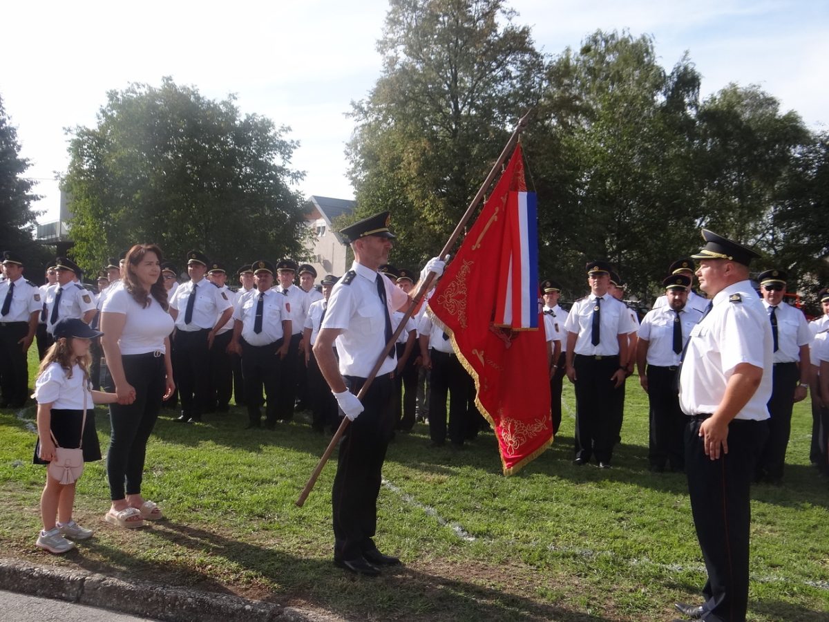 Predao mu je kum zastave Zvonko Knezić, koji je ujedno i zapovjednik spomenutog društva. Predajući je predsjedniku Medvedu, Knezić je rekao:- Gospodine predsjedniče DVD-a, ova zastava predstavlja simbol humanosti i hrabrosti, poštenja, iskrenosti i požrtvovnosti. Neka se pod ovom zastavom okupljaju Vaši članovi njegujući ove vrednote i gajeći u sebi plemenitu misao pomoći bližnjem u nevolji. Predajem Vam ovu zastavu s likom svetog Florijana, zaštitnika vatrogasaca, kao znak zahvalnosti za sve što su učinili vatrogasci ovog društva za dobrobit mještana i cijele okolice- rekao je Knezić.