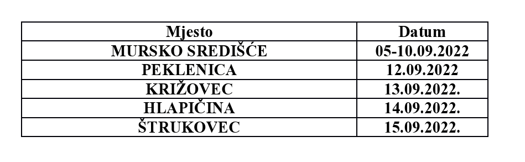 Djelatnici DDD službe BIOINSTITUTA d.o.o provest će deratizaciju na području Grada Mursko Središće prema sljedećem rasporedu: