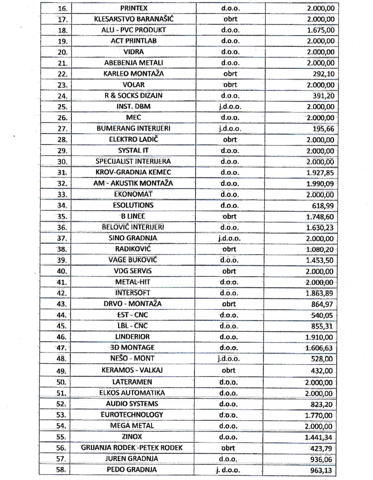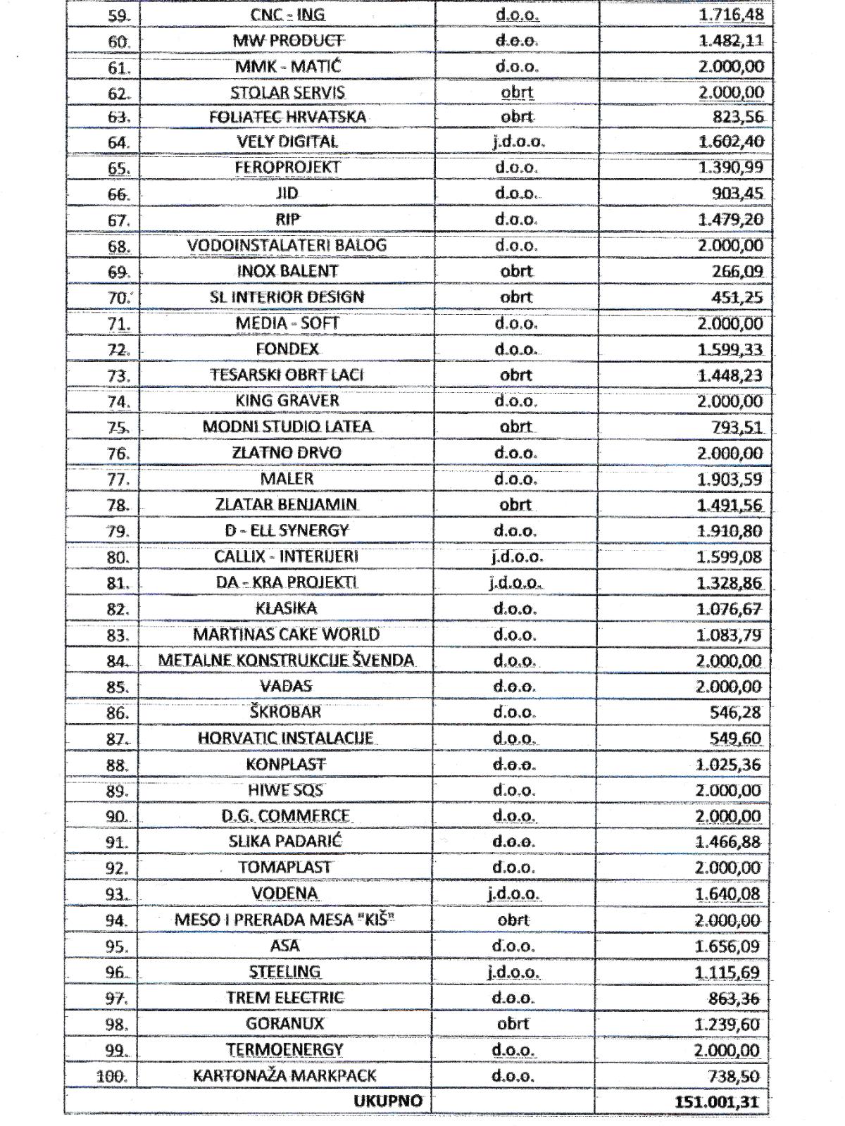 Na zahtjev naših čitatelja, objavljujem popis svih 100 međimurskih poduzetnika (tvrtki) i iznose bespovratne potpore koje su dobili.