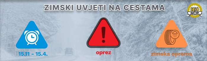 Sukladno Odluci o obaveznoj uporabi zimske opreme na zimskim dionicama javnih cesta u Republici Hrvatskoj (“NN” br. 121/20. i 143/23.), propisana je obaveza korištenja zimske opreme u razdoblju od 15. studenoga tekuće godine do 15. travnja iduće godine.