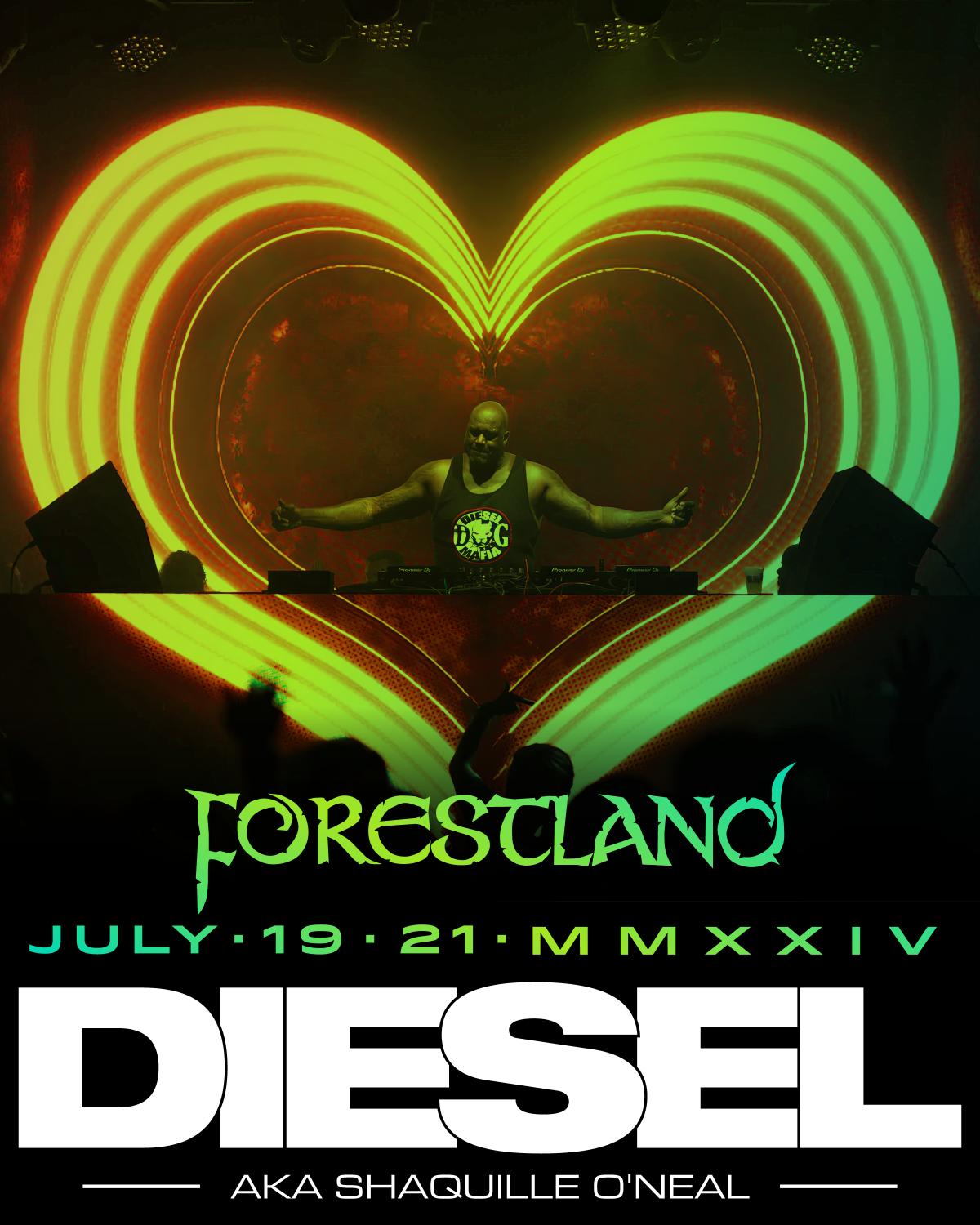 „DJ Diesel, Shaq, svima nama je poznatiji kao jedan od najboljih košarkaša svih vremena, MVP, Dream Team Shaq, ali on nastupa kao DJ i bavi se glazbom od svoje 14. godine” rekao je Krešo Biškup iz organizacije Forestlanda. „Jedan je od najvećih glazbenika, doslovno i preneseno, DJ Diesel nastupao je na Tomorrowlandu, EDC, Lost Lands, Lollapalooza, Electic Zoo, Forbidden Kingdom, Beyond Wonderland i svim najvećim svjetskim festivalima. Protekle godine pokrenuo je i svoj festival „Shaq’s Bass All Stars”, a u Međimurje stiže po završetku ljetne rezidencije u WYNN klubu u Las Vegasu!”