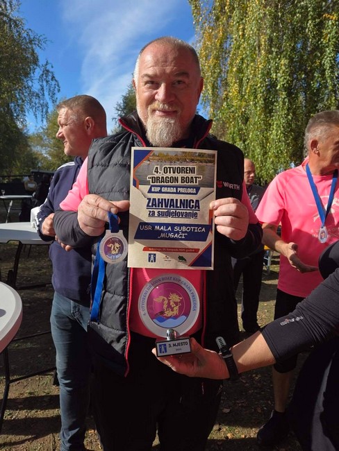 Posebna priča dogodila se u Prelogu, gdje su Mugači nastupili na Dragon Boatu i, uz samo jedan zajednički trening, osvojili odlično treće mjesto! Unatoč manjem incidentu u prvoj vožnji – sudaru dvaju čamaca koji je, srećom, prošao bez prevrtanja – ekipa je u ponovljenoj vožnji pokazala pravi natjecateljski duh. S osmijehom, zabavom i borbenim žarom, veslali su još jače i brže te zasluženo stigli do postolja.