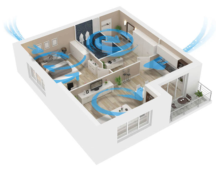 3. Odvod lošeg, ustajalog zraka i istovremeno dotok svježeg, pročišćenog zraka u cijelom prostoru