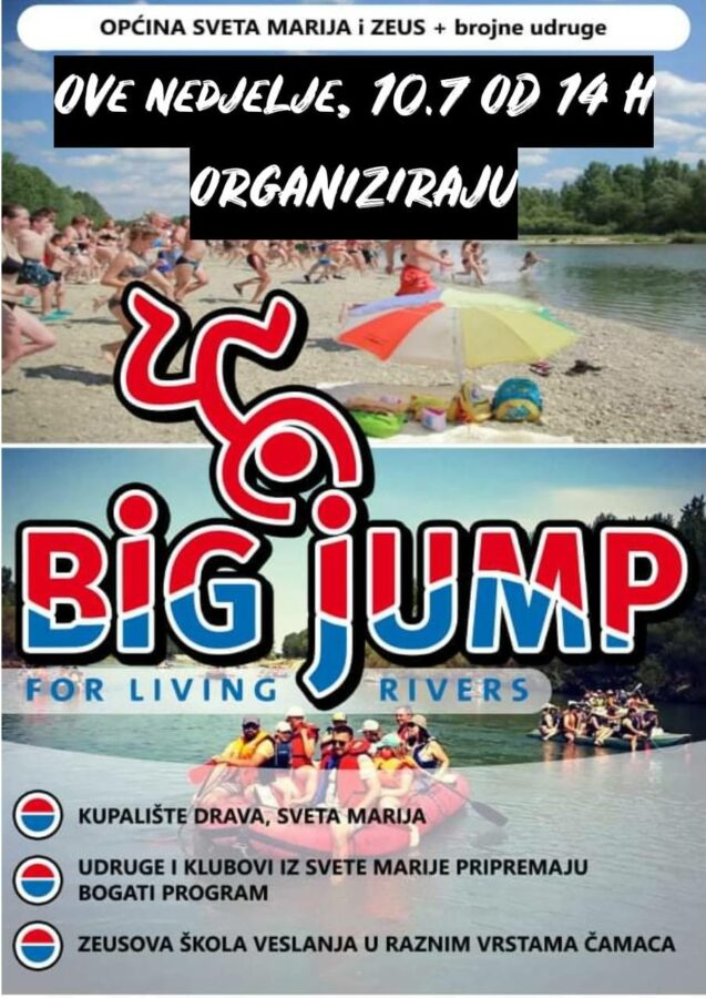 Općina Sveta Marija sa svojim udrugama i Zaštitarsko-ekološka udruga “Senjar” – ZeuS iz Donje Dubrave organiziraju u nedjelju, 10. srpnja 2022. godine u 14 sati već tradicionalni Big Jump – Veliki skok za rijeku Dravu 2022.