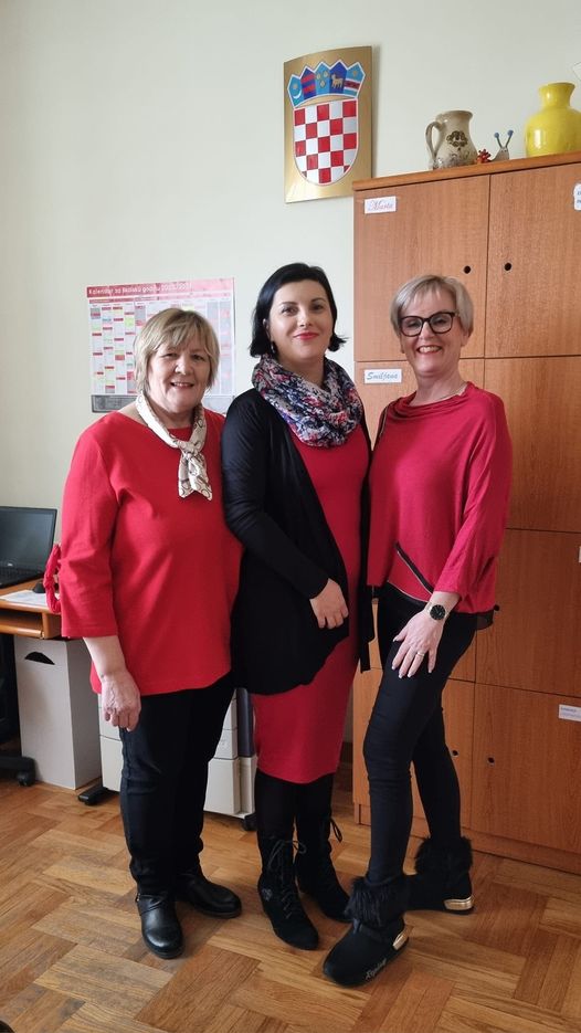Današnji Dan crvenih haljina redovito obilježavaju učiteljice Marija Bobić, Ivana Lukša Peranec Renata Šalković iz OŠ Sveta Marija. -To radimo godinama unatrag dajući na taj način podršku svim ženama u podizanju svijesti o moždanom udaru kod žena-rekle su nam vjerujući kako će tako odjevene doći na posao i kolegice iz druge smjene.