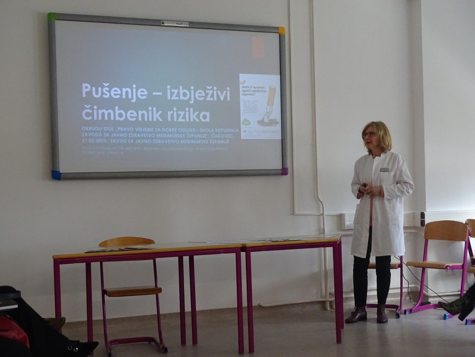 Povodom obilježavanja Hrvatskog dana bez duhanskog dima i Tjedna psihologije, 21.2.2023. godine u Zavodu za javno zdravstvo Međimurske županije, s ciljem pokretanja Škole nepušenja, održan je okrugli stol „Pravo vrijeme za dobre odluke – Škola nepušenja Zavoda za javno zdravstvo Međimurske županije“.