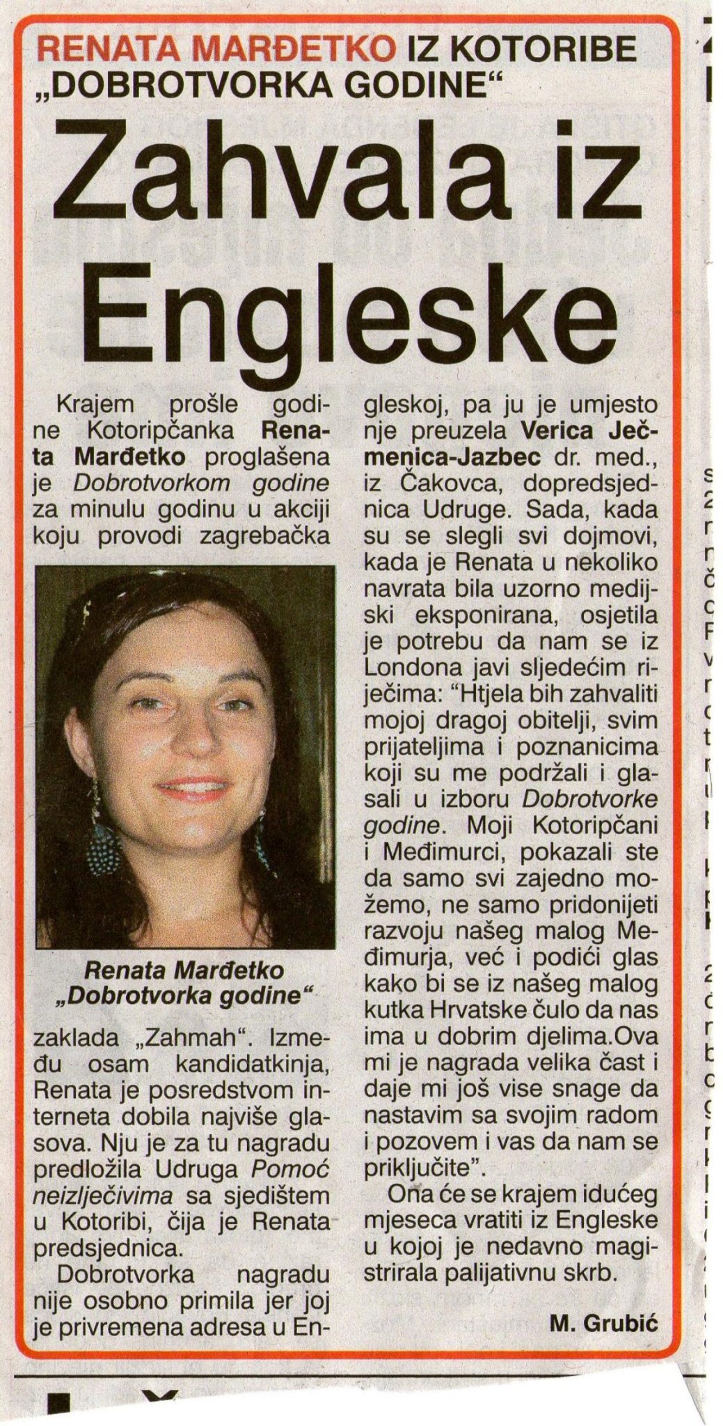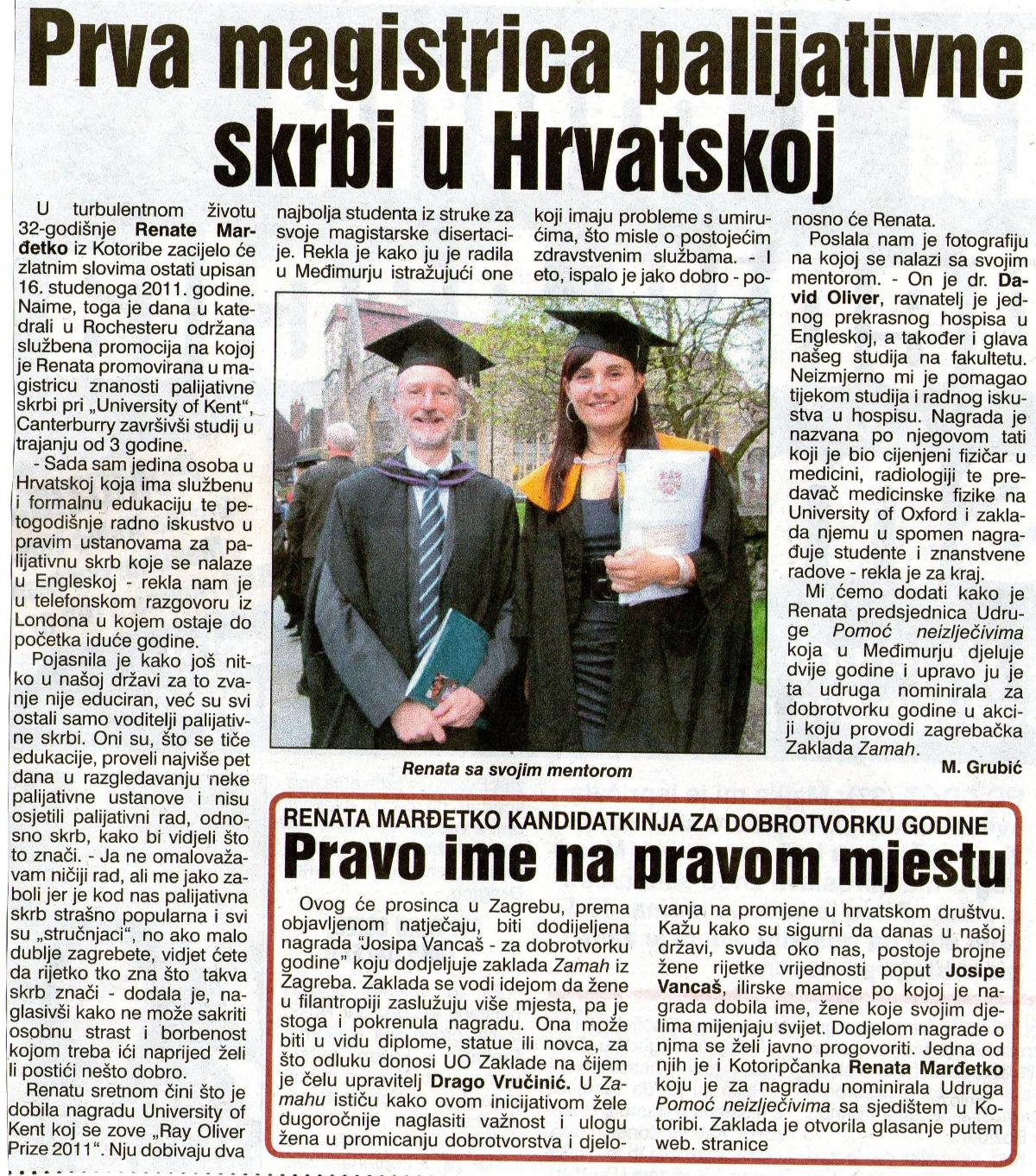 Drugog dana mjeseca siječnja 2010. godine u Kotoribi, gdje je živjela mr. sc. Renata Bermenec, održana je osnivačka skupština Udruge “Pomoć neizlječivima”. Kako je i zbog čega došlo do osnivanja Udruge, razgovarali smo s mr. sc. Renatom Bermenec, predsjednicom Udruge.
