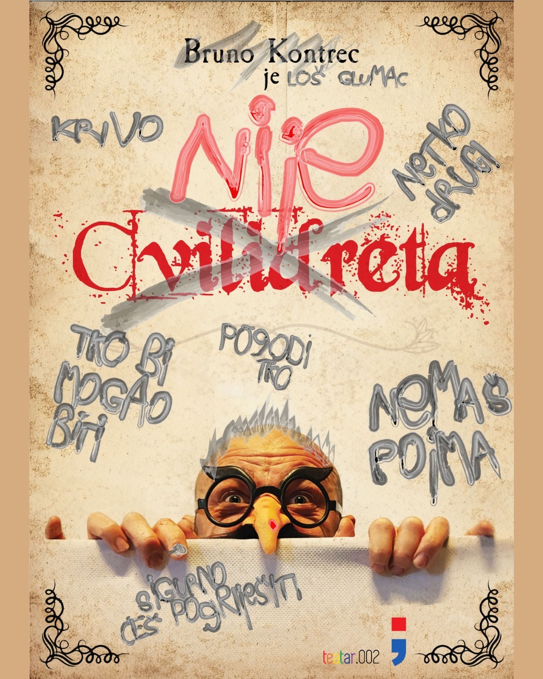U nedjelju, 13. travnja 2025. u 16 sati, u sklopu Kazališne tribine za djecu i mlade „Cukorek“ bit će izvedena predstava „Nije Cvilidreta“ u izvedbi Teatra.002. Tekst i režiju potpisuje Bruno Kontrec, koji je zaslužan i za scenografiju, kostimografiju te dizajn plakata. Glazbu za predstavu skladao je Stjepan Horvat, dok je dizajn rasvjete povjeren Ivanu Štroku.