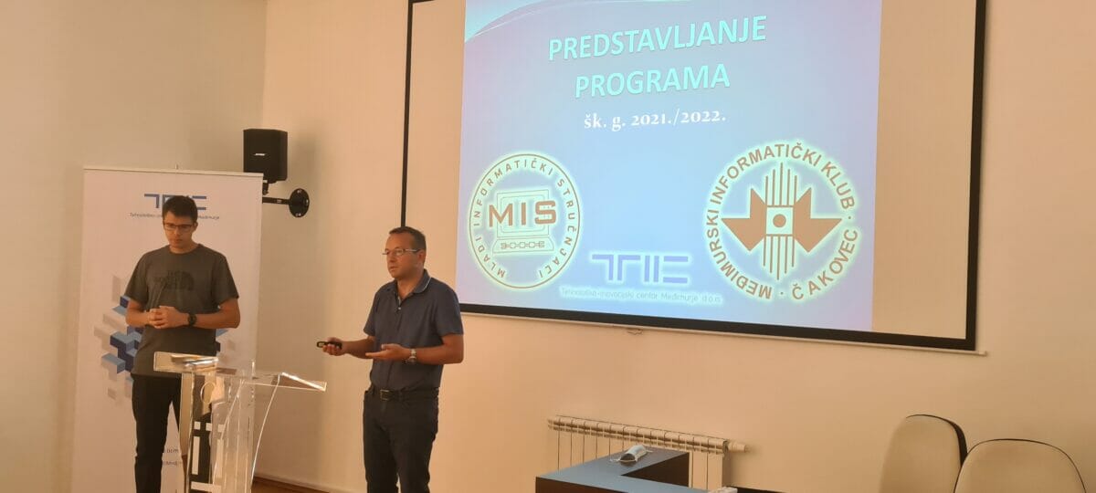 U prostorima Tehnološko-inovacijskog centra Međimurje u subotu, 11. rujna, udruge Mladi informatički stručnjaci (MIS) i Međimurski informatički klub (MIK) predstavile su plan i program rada za školsku godinu 2021./2022. Javnom predstavljanju prisustvovali su roditelji, školarci i ostali zainteresirani koji su imali prilike iz prve ruke – od voditelja tečajeva, predsjednika udruge MIS Dejana Drabića te predsjednika MIK-a Viktora Lazara, čuti sve detalje o aktivnostima usmjerenim na razvoj kreativnosti, analitičko-logičkog i kritičkog razmišljanja.
