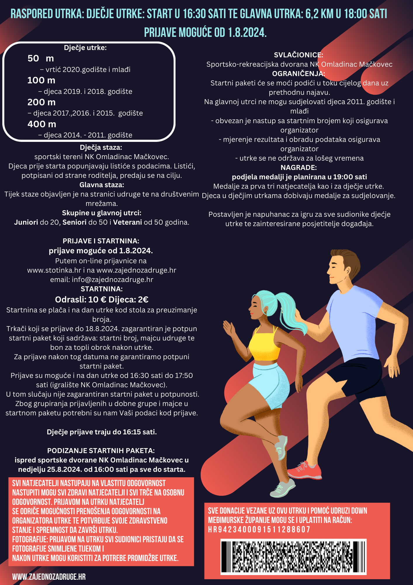 Za djecu i odrasle su prevdviđeni startni paketi (zagarantirani za prijavljene do 18.8.). Sve dodatne informacije možete potražiti na stranicama udruge www.zajednozadruge.hr ili Facebook Zajedno za druge.