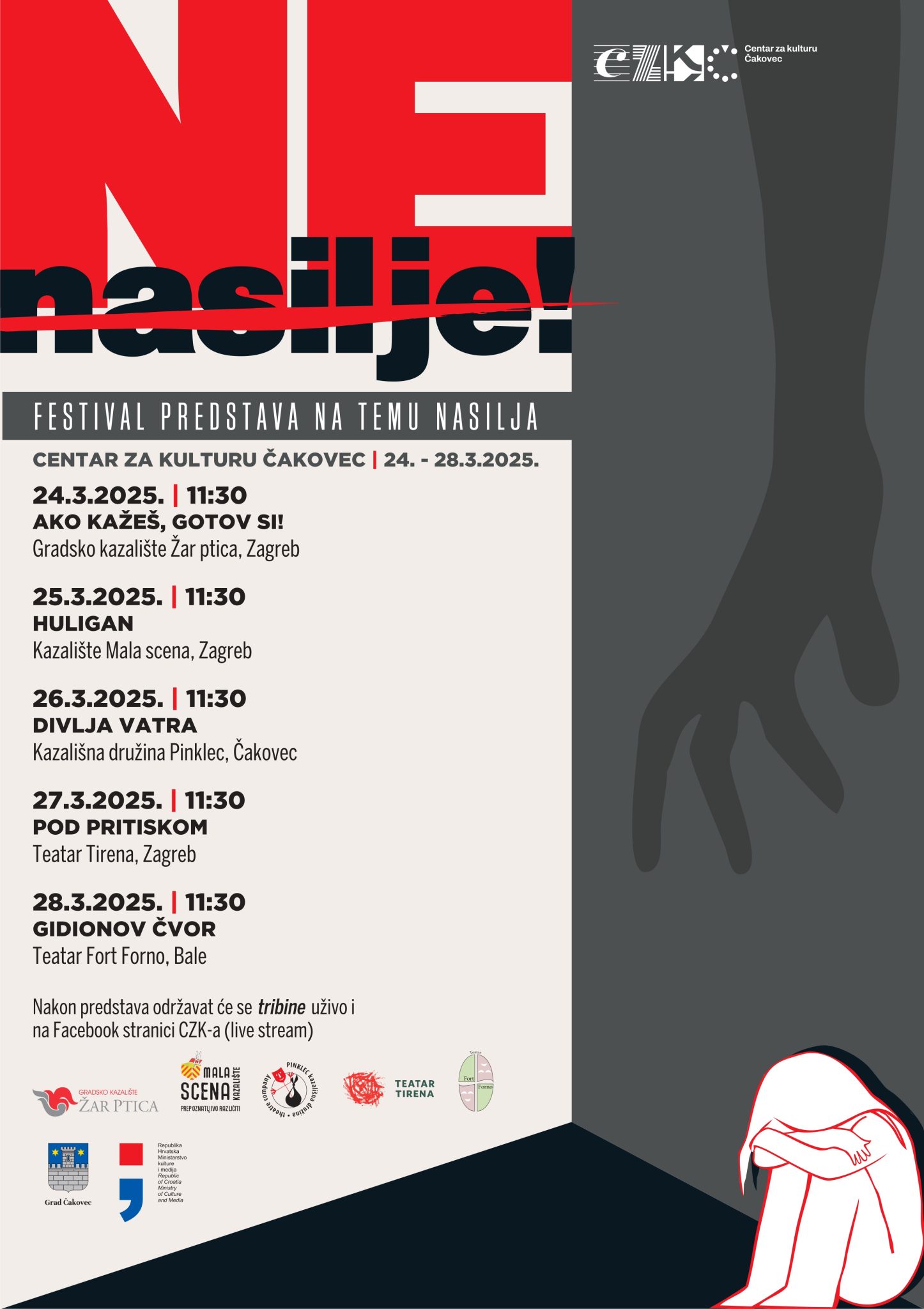 U suradnji sa srednjim školama s područja grada Čakovca Centar za kulturu Čakovec organizira mini festival pod nazivom NE-NASILJE! koji će se održati u Centru za kulturu Čakovec od 24. do 28. 3. 2025.