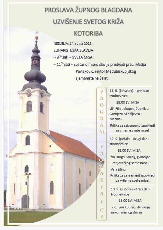 Župa Kotoriba priprema se za proslavu svog župnog blagdana – Uzvišenja Svetog Križa, koja će kulminirati u nedjelju, 14. rujna 2025. godine.