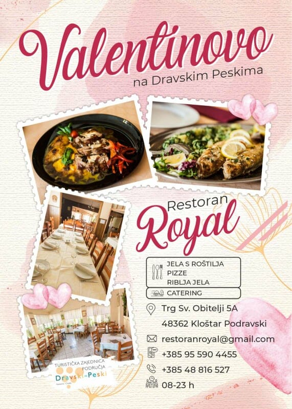 Ukoliko se još niste odlučili kamo izvesti dragu osobu povodom Valentinova, naša preporuka je destinacija Dravski Peski. Predivno područje smješteno u srcu Podravine obuhvaća prostor četiri općine: Ferdinandovac, Kalinovac, Kloštar Podravski i Podravske Sesvete. Područje je smješteno ispod obronaka Bilogore i predivne rijeke Drave dok se u sredini nalazi rijetki fenomen – Peski, naša pustinja. Osim brojnih turističkih zanimljivosti koje možete pronaći na web stranici www.dravskipeski.hr ili na mobilnoj aplikaciji Explore Dravski Peski, mi vam donosimo preporuku smještaja i bogate gastronomske ponude povodom dana zaljubljenih.