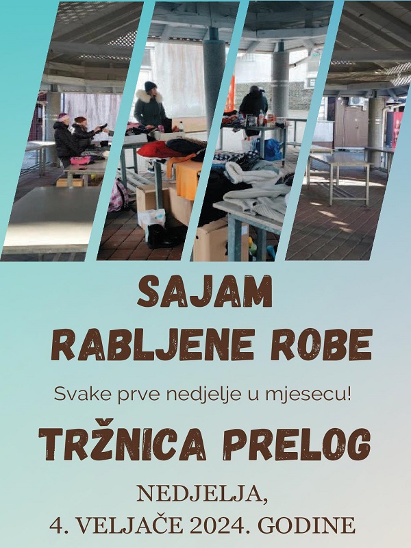 Po povoljnim cijenama ovdje će se sigurno moći nabaviti dobro očuvana odjeća i obuća, kao i igračke, knjige, nakit i kućne potrepštine te brojne druge zanimljive i nekome sigurno potrebne stvari. Novo ovogodišnje druženje na Tržnici Prelog, zakazano je za nedjelju, 4. veljače 2024. godine.