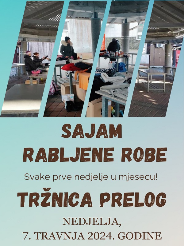Prve nedjelje u mjesecu travnju, na Tržnici Prelog održat će se Sajam rabljene robe. Prije nekoliko godina, u Prelogu, na prostoru Tržnice Prelog, pokrenut je Sajam rabljene robe. Nakon duge pauze, Sajam rabljene robe se vratio na Tržnicu Prelog u prosincu 2022. godine.