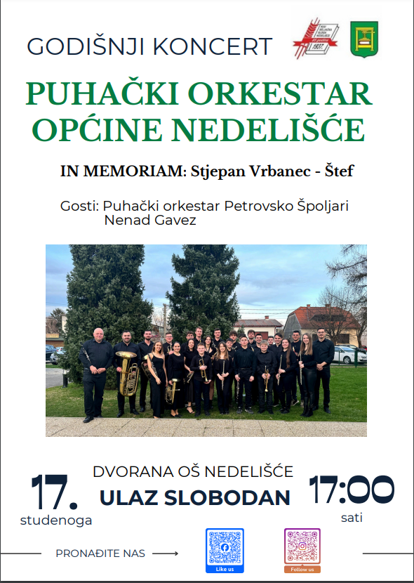 Puhački orkestar Općine Nedelišće poziva vas na godišnji koncert!