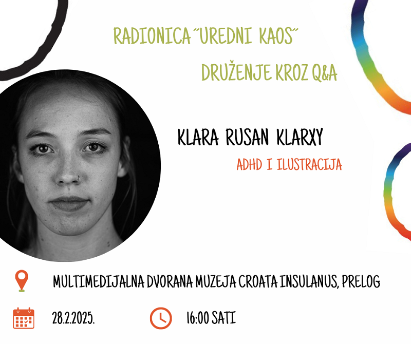 – Željeli bismo vam predstaviti naše ciljeve, ideje i zamisli. Nit vodilja nam je da o neurorazličitim osobama učimo od njih samih pa smo iz tog razloga na ovaj događaj pozvali Anu Jembrek, koja će nam iz vlastitog iskustva ispričati kako je biti neurodivergentna žena u neurotipičnoj okolini. Ana je operna pjevačica koju je otkrivanje vlastitog glasa odvelo na začudna mjesta prepuna riječi i priča. Kad ne pjeva, ne piše ili ne vodi blog Knjige su moj svijet, najradije razgovara sa svojim kućnim ljubimcima. Njima je baš svaka priča dobra, dokle god nema pjevanja. Volite li ilustraciju ili umjetnost općenito? Jeste li možda neurodivergentni? Zanima li vas možda ta tema? Imate li možda člana obitelji koji je u spektru autizma, ima disleksiju ili disgrafiju ili ADHD? Ili ste čuli za Klaru Rusan Klarxy, jednu od najboljih hrvatskih ilustratorica i želite ju uživo upoznati u Prelogu? Možda želite čuti kako ova uspješna umjetnica i fantastična osoba uspijeva svoj ADHD „upregnuti” kao stvaralačku silu i istovremeno živjeti sa manje zabavnim aspektima koje on donosi? Možda imate kakvo pitanje a Klara bi mogla na njega odgovoriti? Onda se prijavite za radionicu ilustracije koju će Klara održati u Muzeju Croata Insulanus u Prelogu 28. veljače u 16 sati. Ako pak vas zanima samo razgovor s Klarom, dođite u 17 sati na neformalno druženje s Klarom na kojem će roditelji, terapeuti, nastavnici, djeca i svi zainteresirani moći uživo s Klarom pričati i čuti njezina iskustva o jednom zanimljivom suživotu umjetnosti, rada i neurodivergentnosti – stoji u najavi.