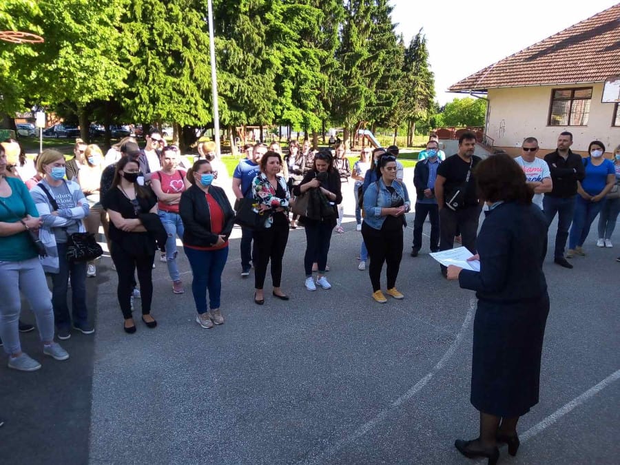 Ravnateljica OŠ „Đuro Ester“ održala je roditeljski sastanak sa svim roditeljima na PŠ Vinica i provela anketu kojom je upitala roditelje žele li da njihova djeca sjede ili stoje u blagovaonici za vrijeme užine. Anketa je pokazala da 52 roditelja žele da djeca stoje, a 7 roditelja želi da djeca sjede.