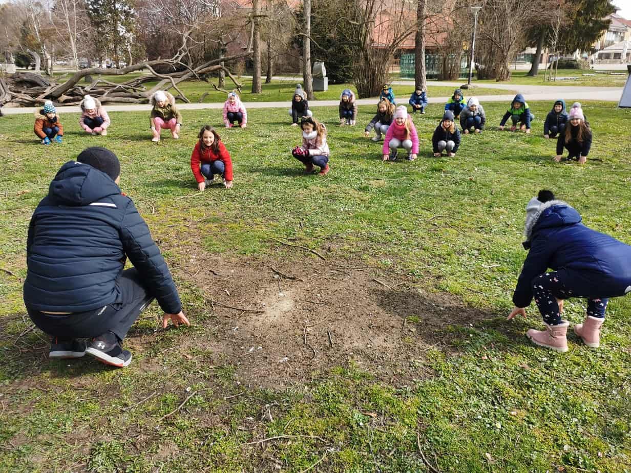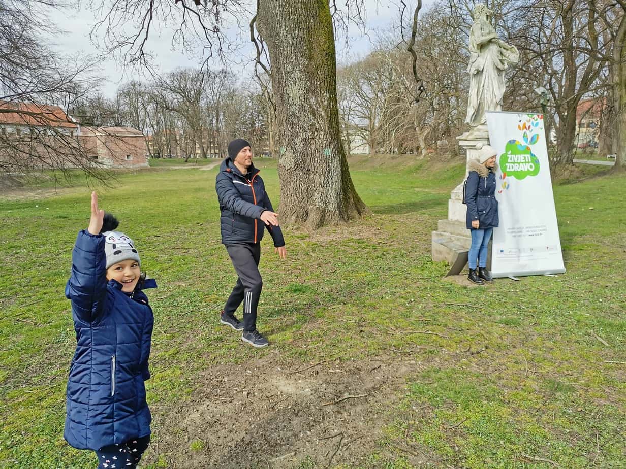 „Ove godine radimo s manjim, homogenim grupama, a najbolja takva grupa nam je školski razred“ kazao je. Tako je ove subote prijepodne u čakovečkom Perivoju Zrinski boravio 1a razred iz Osnovne škole Petar Zrinski Šenkovec. Prvašići iz Šenkovca za vrijeme jednog školskog sata odradili su uvodno vježbanje, a kasnije su imali edukativnu šetnju. Vježbanje je vodio volonter Goran Kolarić, trener u Čakovečkom plivačkom klubu i profesor tjelesne i zdravstvene kulture u III. OŠ Čakovec.
