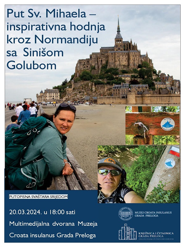 Knjižnica i čitaonica Grada Preloga i Muzej Croata insulanus Grada Preloga vas i ove godine pozivaju na osmu Putopisnu svaštaru u okviru koje organiziraju autorsko predavanje nagrađivanog putopisca Siniše Goluba na temu i pod naslovom: Put Sv. Mihaela – inspirativna hodnja kroz Normandiju.