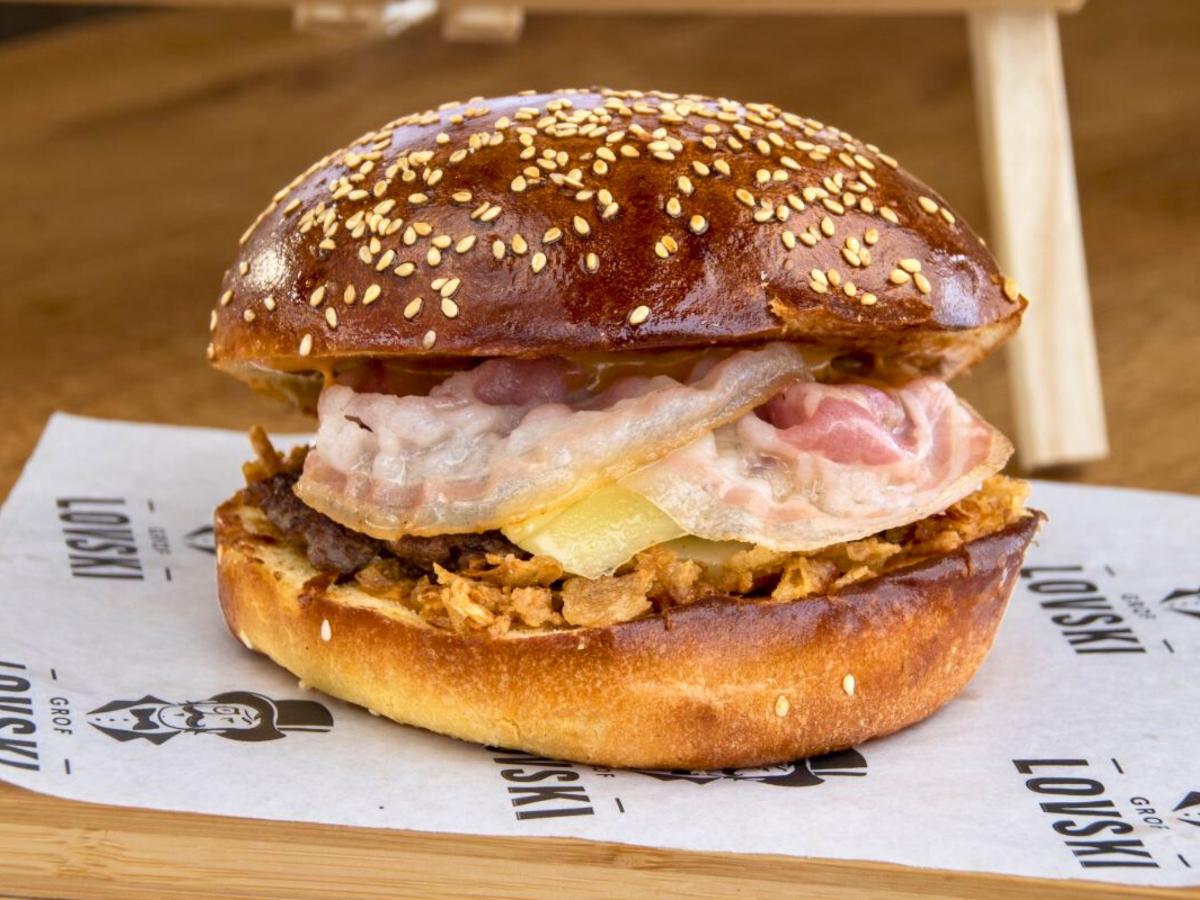 A svakako bi valjalo kušati i Smash burger Grofa Lovskog s mesom divljači u savršeno mekom brioche pecivu. Ovaj burger obogaćen je aromatičnim žutim umakom, rastopljenim sirom, hrskavom pancetom i slasnim prženim lukom.