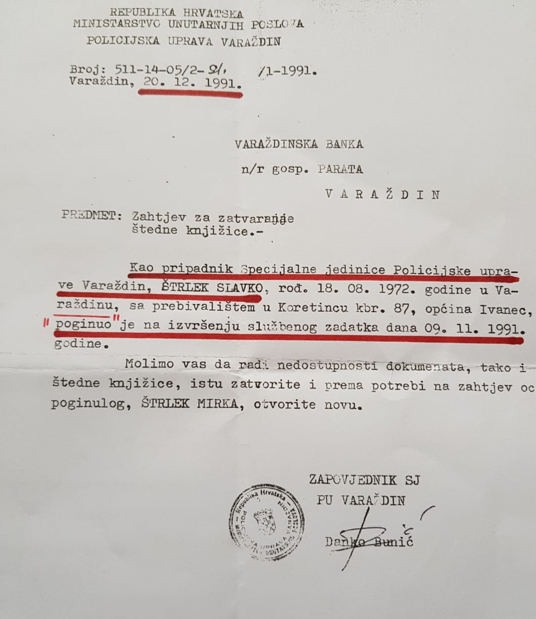 Slavko Štrlek vodio se kao poginuli policajac sve do 22. svibnja 1992. do razmjene u Lipovcu.
