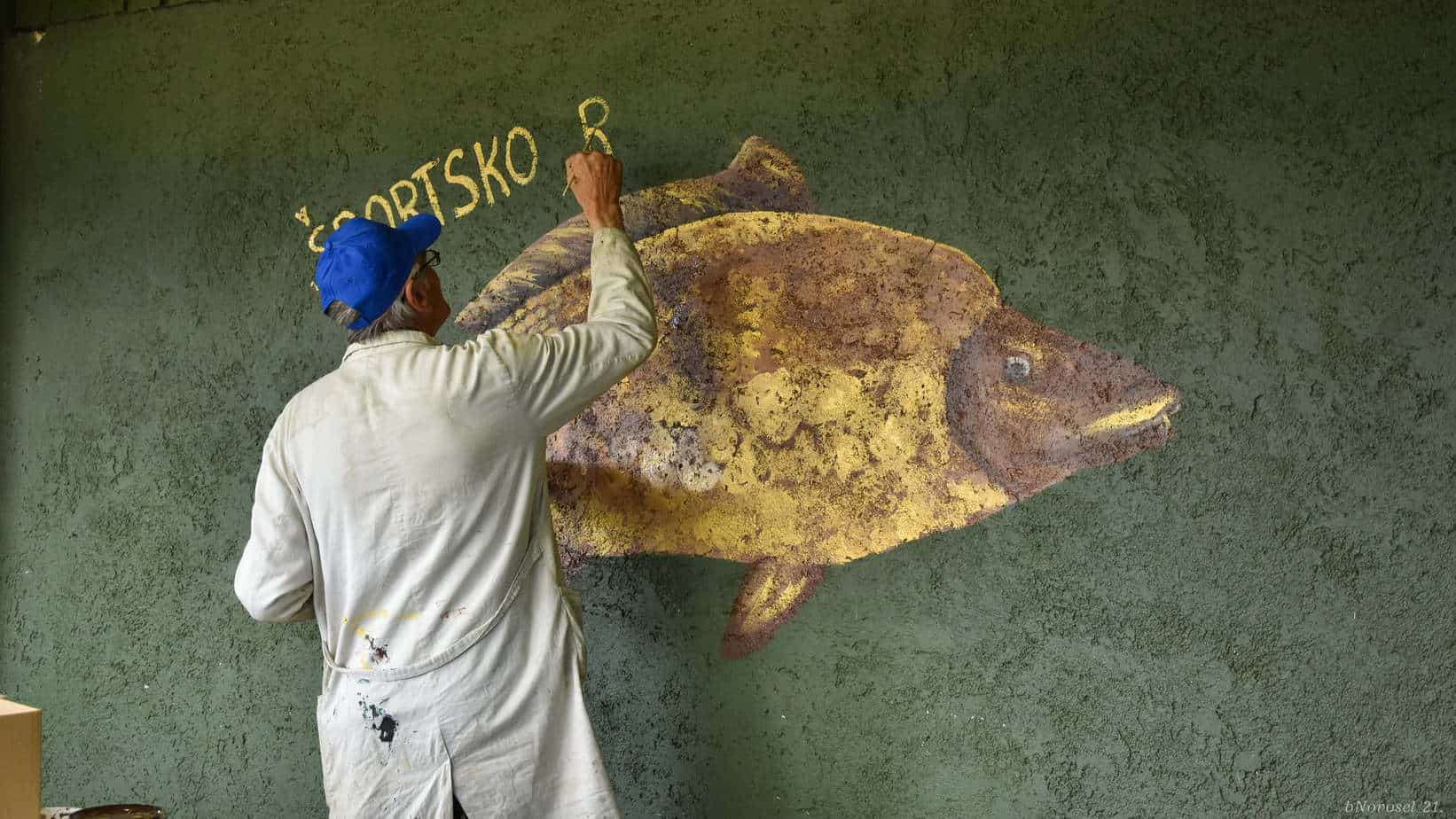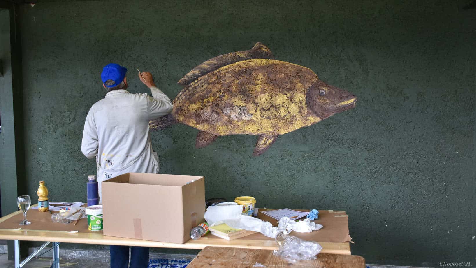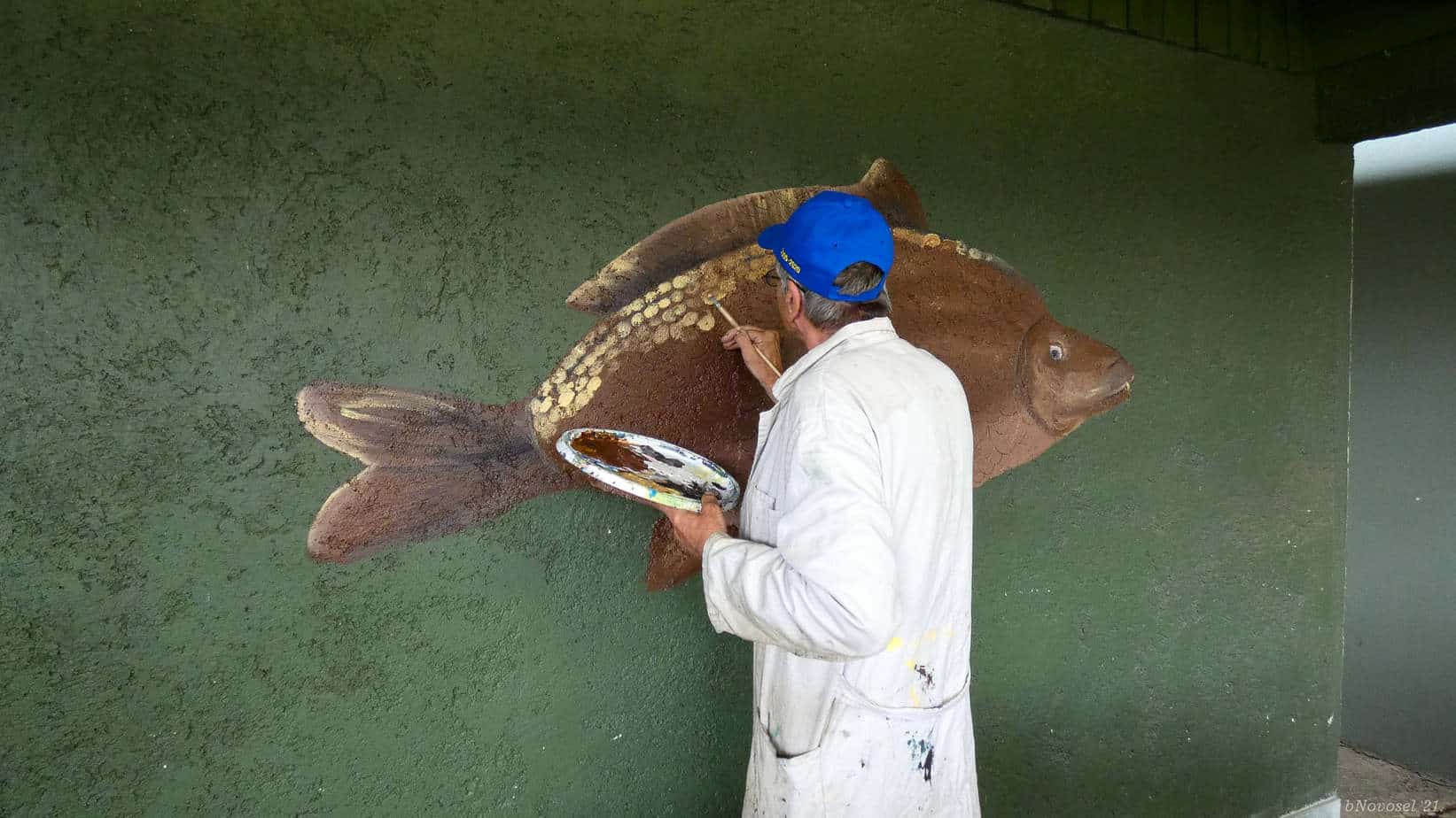Za posebno iznenađenje domaćinima pobrinuo se slikar Mladen Palić iz Svetog Martina na Muri. Dok su njegovi kolege mahom radili na platnu i papiru, Mladen je oslikao dio slobodnog zida doma ribolovaca. Slika velikog šarana dugo će na tom zidu svjedočiti jednom zajedništvu, plemenitosti i darežljivosti.