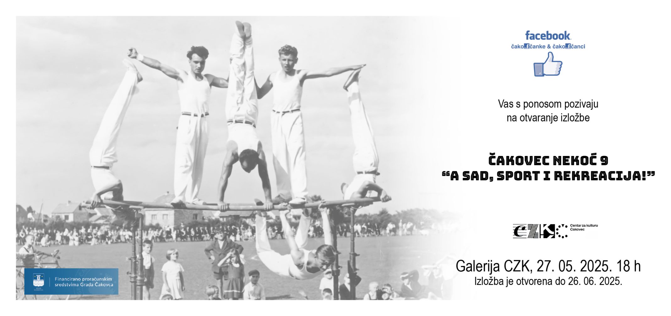 U organizaciji članova Facebook grupe „Čakovčanke i Čakovčanci” i uz pomoć Grada Čakovca, u svibnju se otvara deveta izložba iz serijala „Čakovec nekoć”. Ovoga puta tema su sport i rekreacija u Čakovcu – kroz više od stotinu godina.