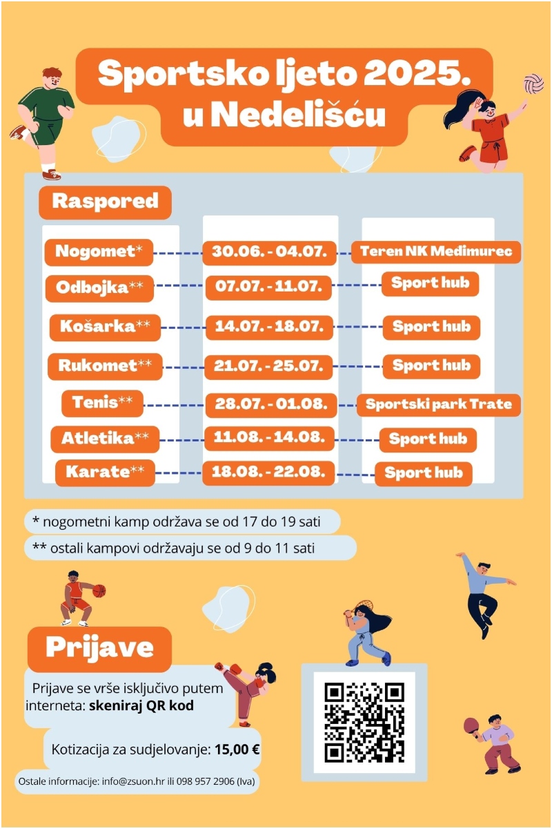 Zajednica sportskih udruga Općine Nedelišće s ponosom najavljuje početak Sportskog ljeta 2025., omiljenog ljetnog programa namijenjenog osnovnoškolcima s područja Općine.