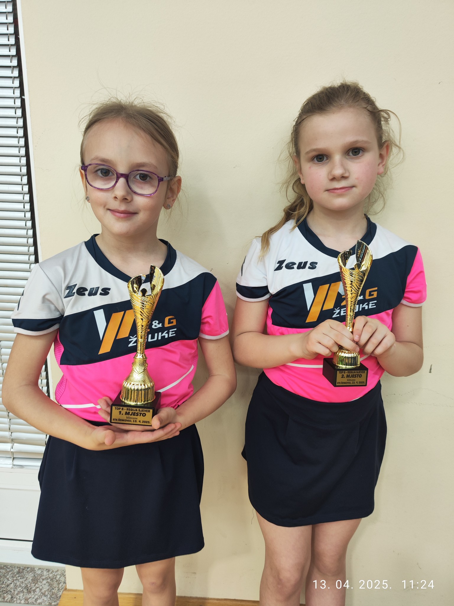 Taša Bestijanić i Tena Crnčec, stolnoteniske princeze iz Šenkovca o kojima smo nedavno pisali, danas su ponovno briljirale. Na turniru Top 8 Sjeverne regije u Šenkovcu osvojile se prvo i drugo mjesto, pri čemu je Taša bila zlatna, Tena srebrna. Njihov međusobni meč bio je i najneizvjesniji na cijelom turniru, a sitnice su presudile u korist Taše koja je slavila s 3-2.