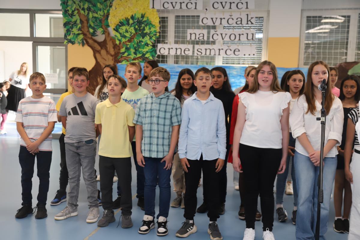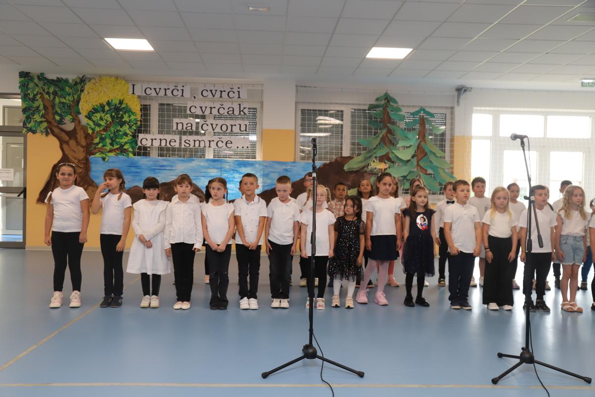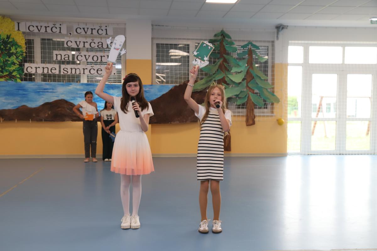 Drugi razredi također su se predstavili recitacijom i pjesmom, a posebno veselje izazvao je nastup malih recitatora koji su izveli kratak, ali duhovit igrokaz. Program je nastavljen izvedbom malog zbora, koji je još jednom pokazao glazbenu razigranost i marljiv rad tijekom godine.