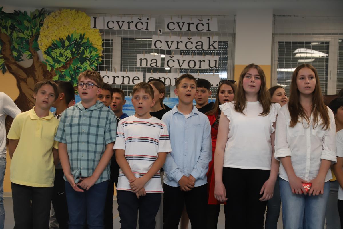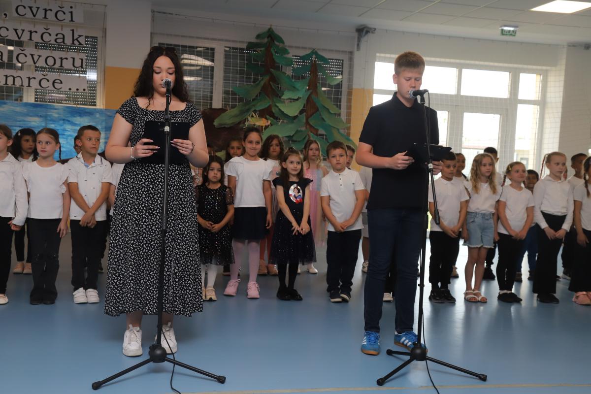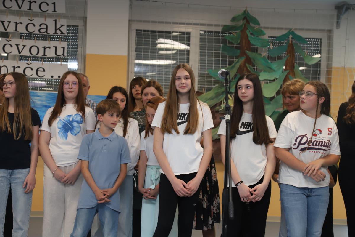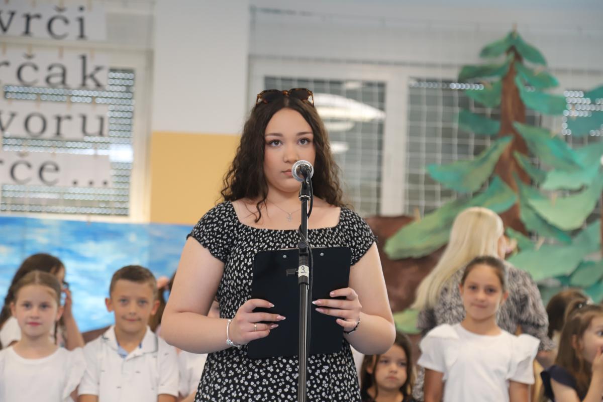 Drugi razredi također su se predstavili recitacijom i pjesmom, a posebno veselje izazvao je nastup malih recitatora koji su izveli kratak, ali duhovit igrokaz. Program je nastavljen izvedbom malog zbora, koji je još jednom pokazao glazbenu razigranost i marljiv rad tijekom godine.
