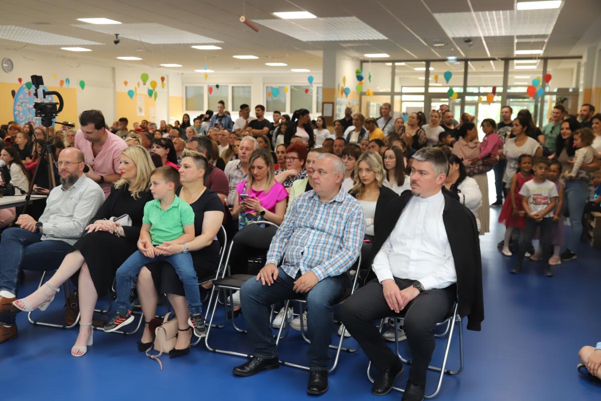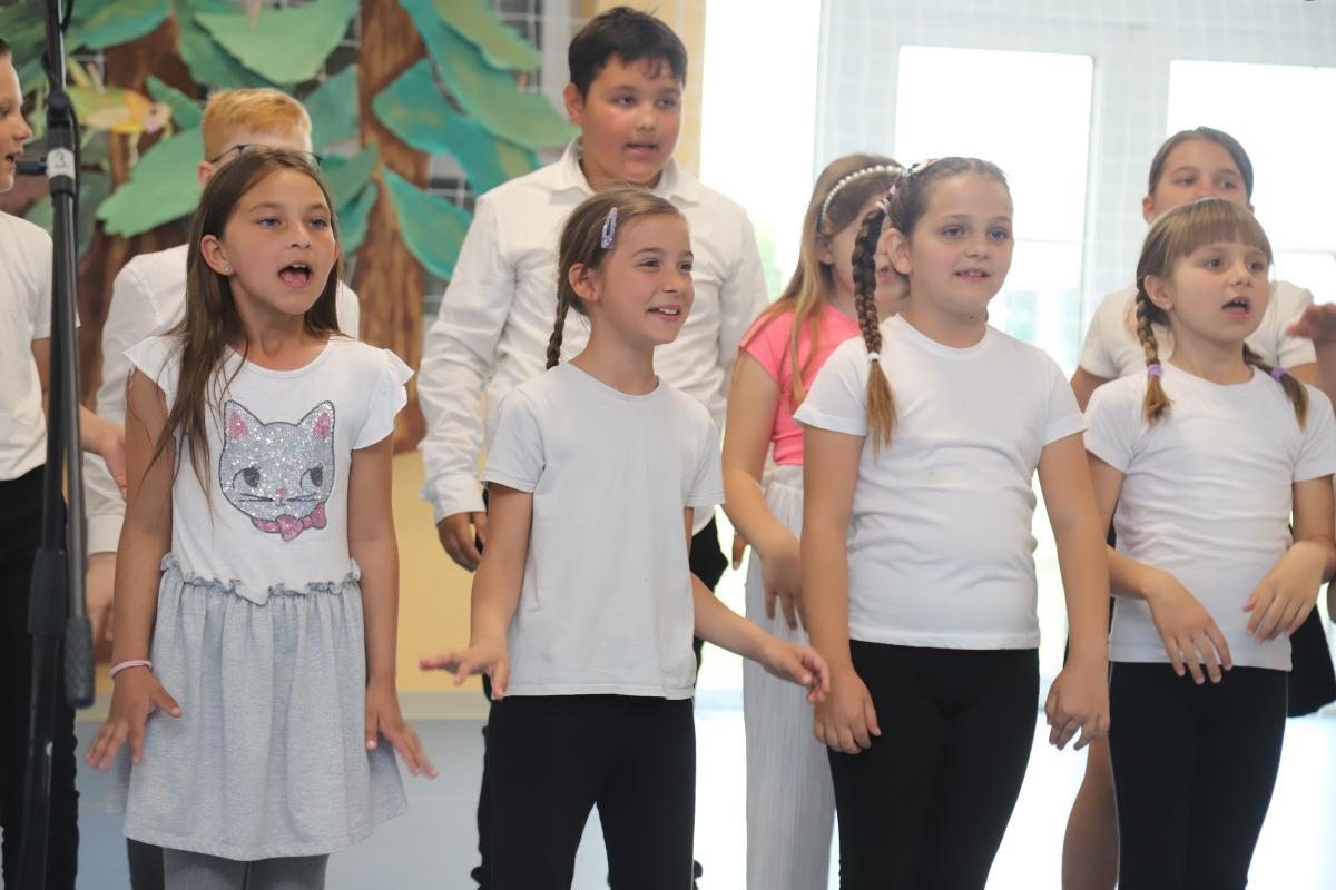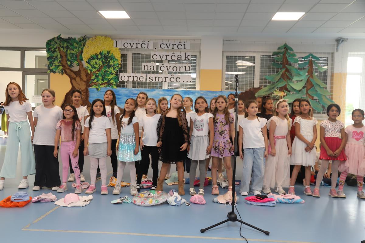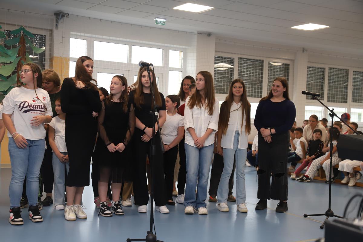 Uslijedio je nastup naših najmlađih – prvašića – koji su razveselili publiku recitacijom i pjesmicom. Učenici produženog boravka, okupljeni u mali folklor, izveli su razigran splet tradicionalnih pjesama, a svojim nastupom oduševili su i male i velike.