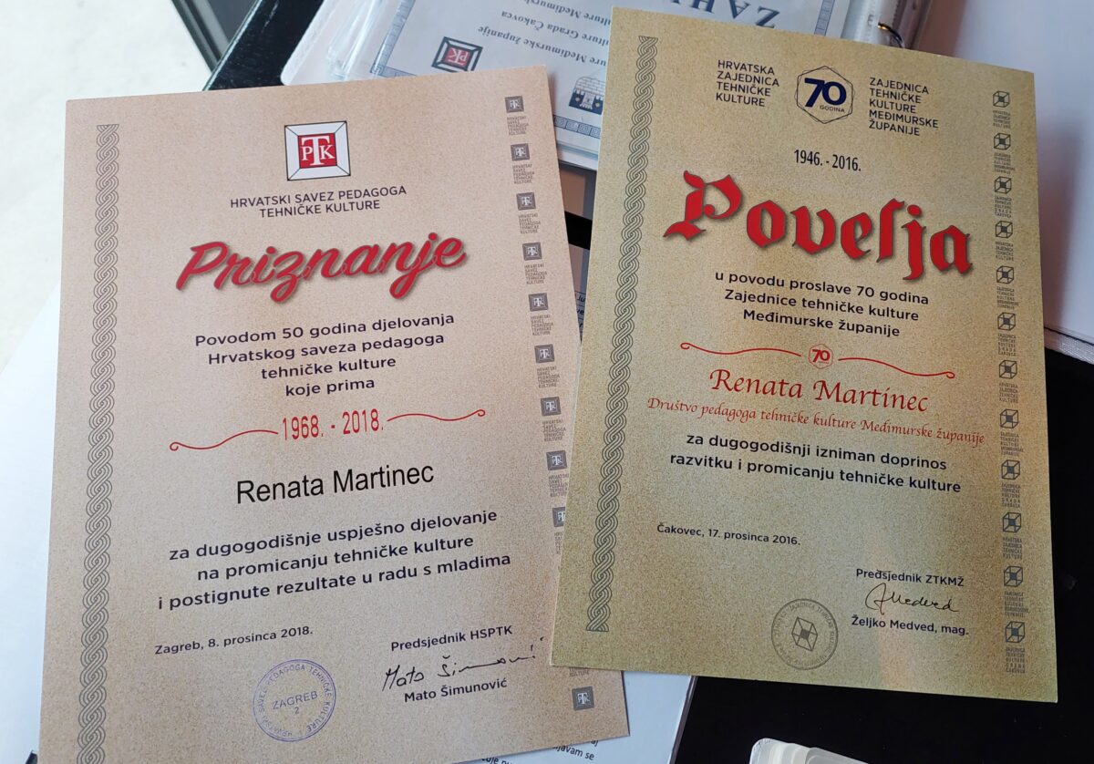 – Moji učenici su često nagrađeni i ljetnim školama, kasnije znaju birati tehnička zanimanja, na što sam najviše ponosna, a neki su članovi Kluba mladih tehničara u OŠ Domašinec i kad krenu u srednju školu. Jako mi je drago kad djeca sama preuzimaju inicijativu… Npr. trogodišnjak s dudom u ustima koji zna spojiti diodu s baterijom, takve me stvari oduševljavaju. Volim sve vezano uz školu, a u radu s djecom, najdraže mi je kad ih pozovem na izvannastavne aktivnosti i dođe ih čak 30!  – rekla je Renata, koja je dosad provela oko 100 radionica za djecu.